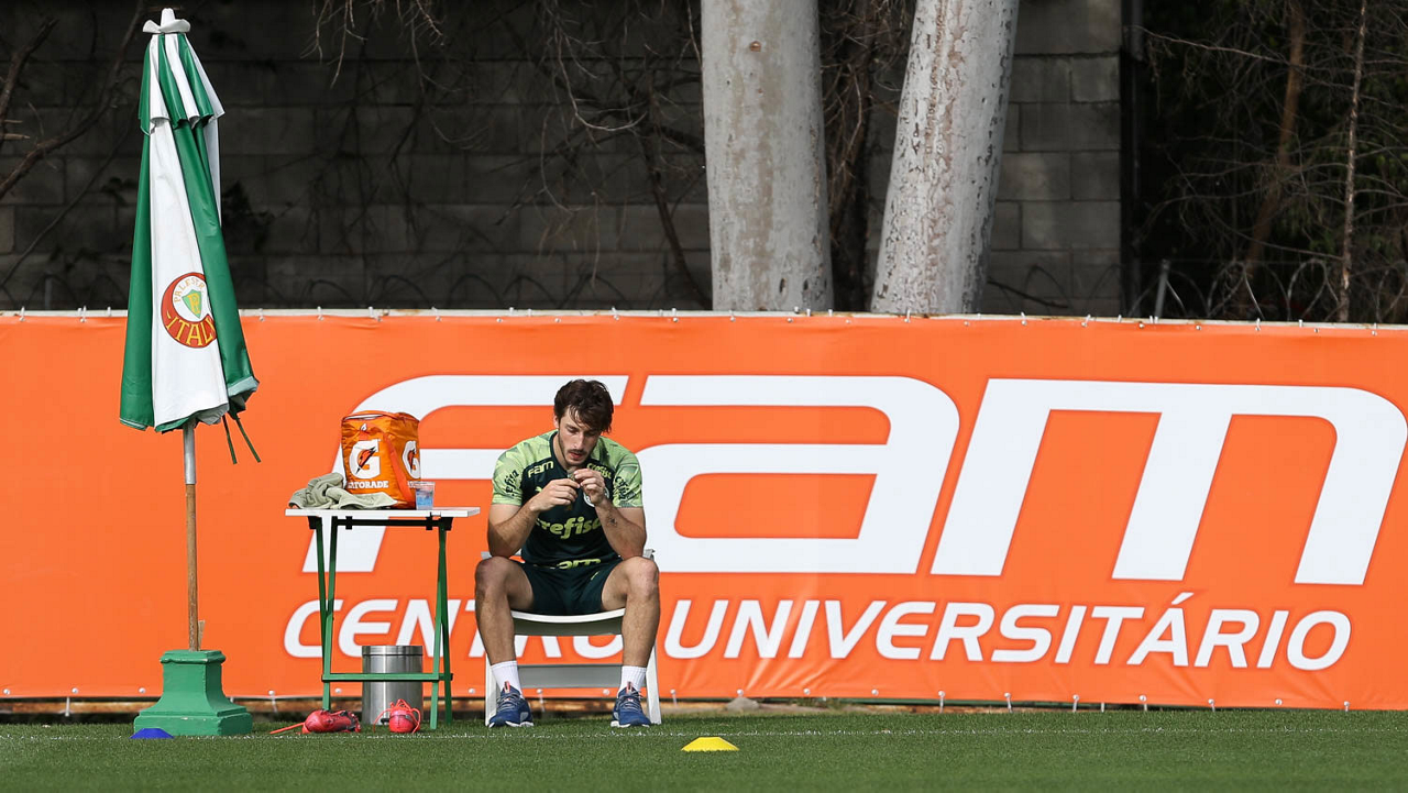 O jogador Raphael Veiga, da SE Palmeiras, durante avaliação física, na Academia de Futebol. (Foto: Cesar Greco)