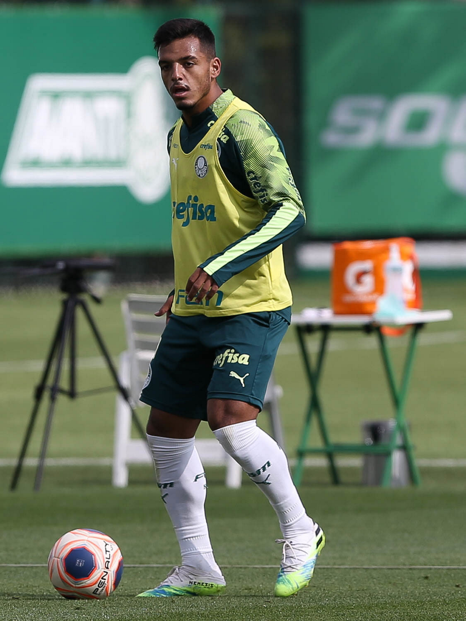 O jogador Gabriel Veron, da SE Palmeiras, durante treinamento, na Academia de Futebol. (Foto: Cesar Greco)