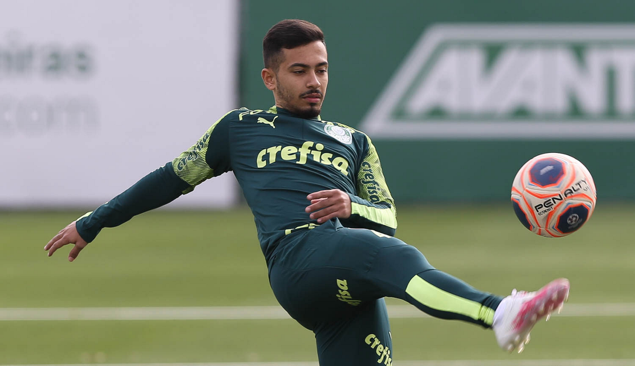 O jogador Gabriel Menino, da SE Palmeiras, durante treinamento, na Academia de Futebol. (Foto: Cesar Greco)