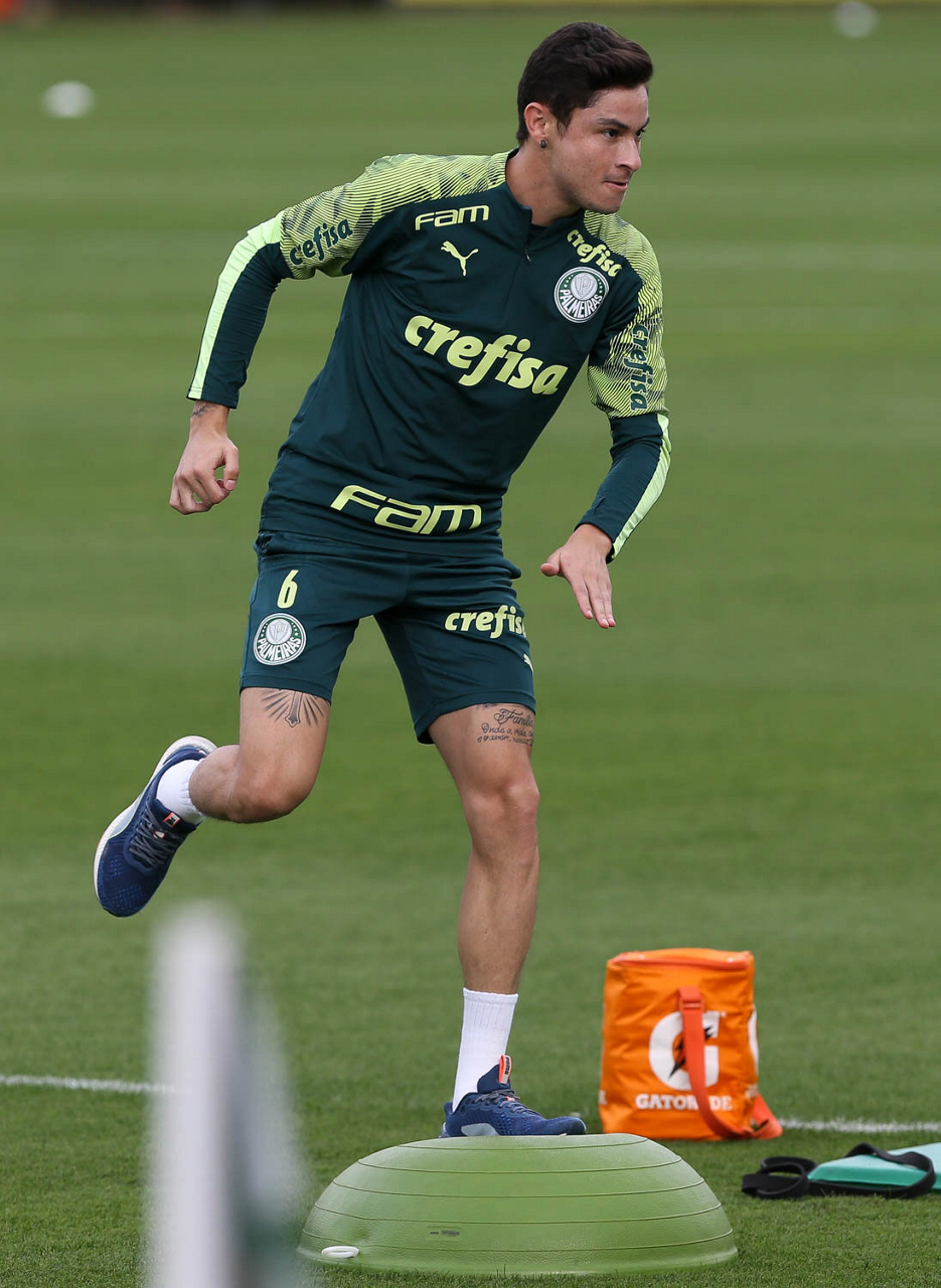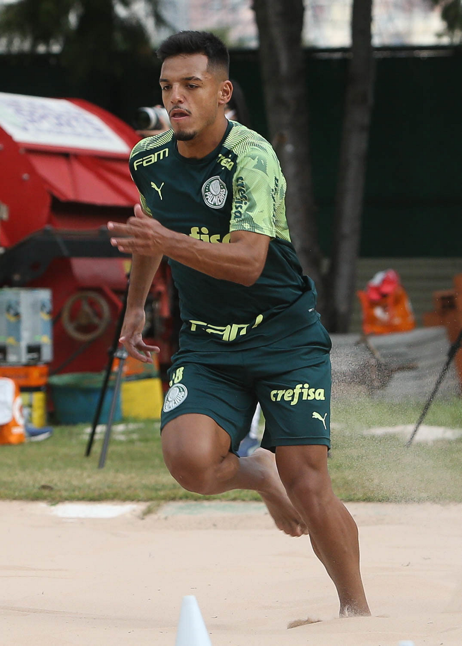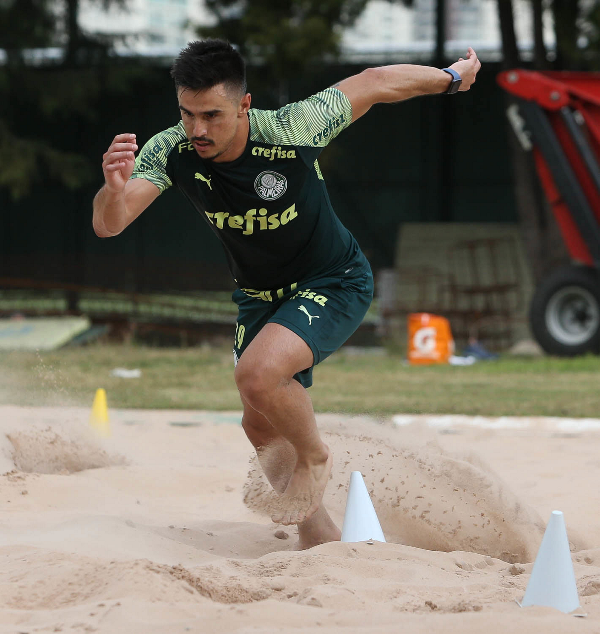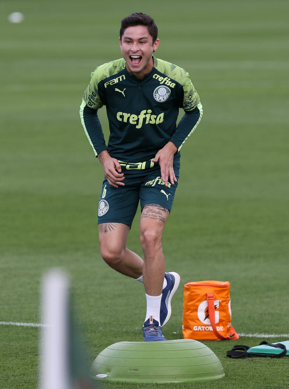 O jogador Gustavo Gómez, da SE Palmeiras, durante treinamento, na Academia de Futebol. (Foto: Cesar Greco)