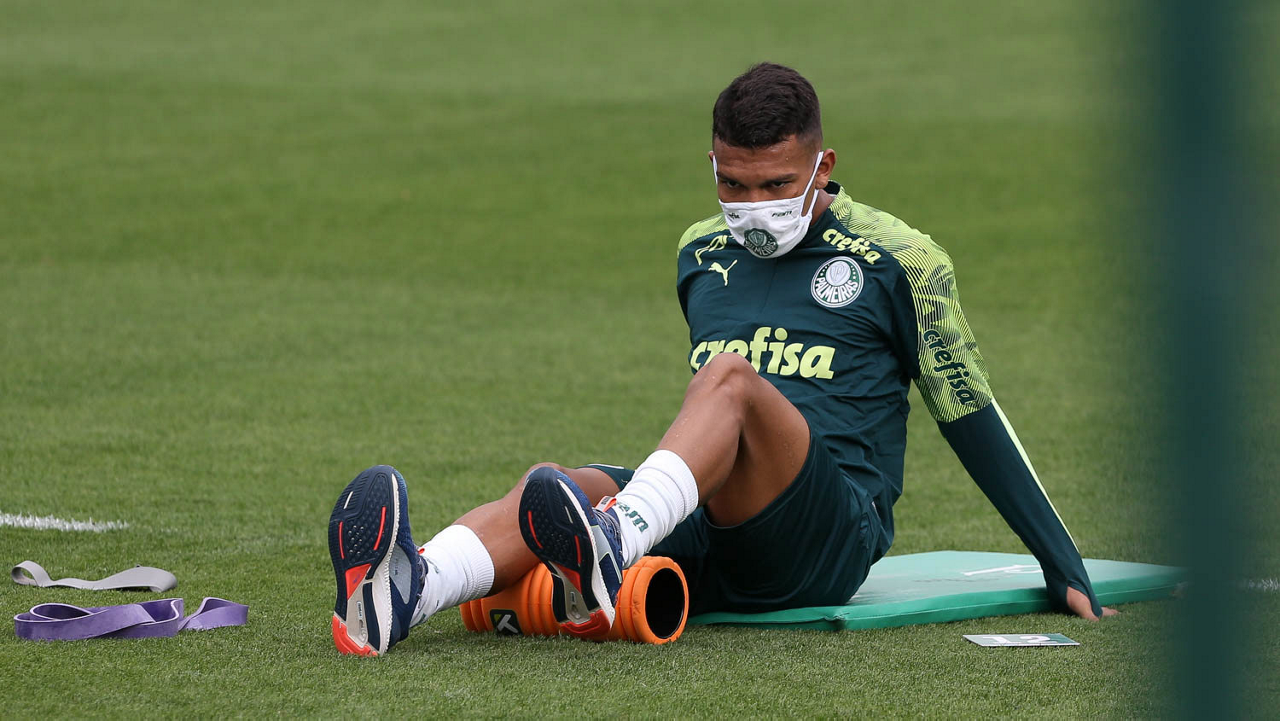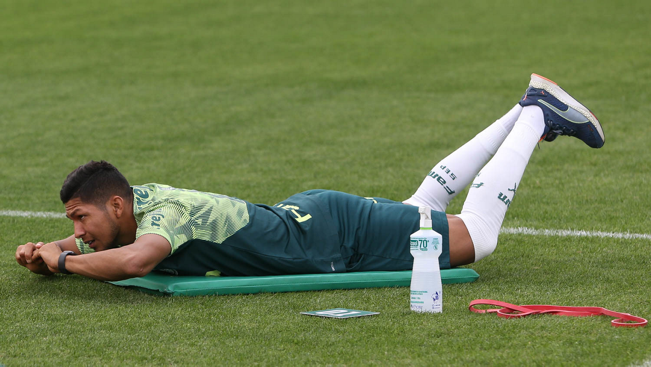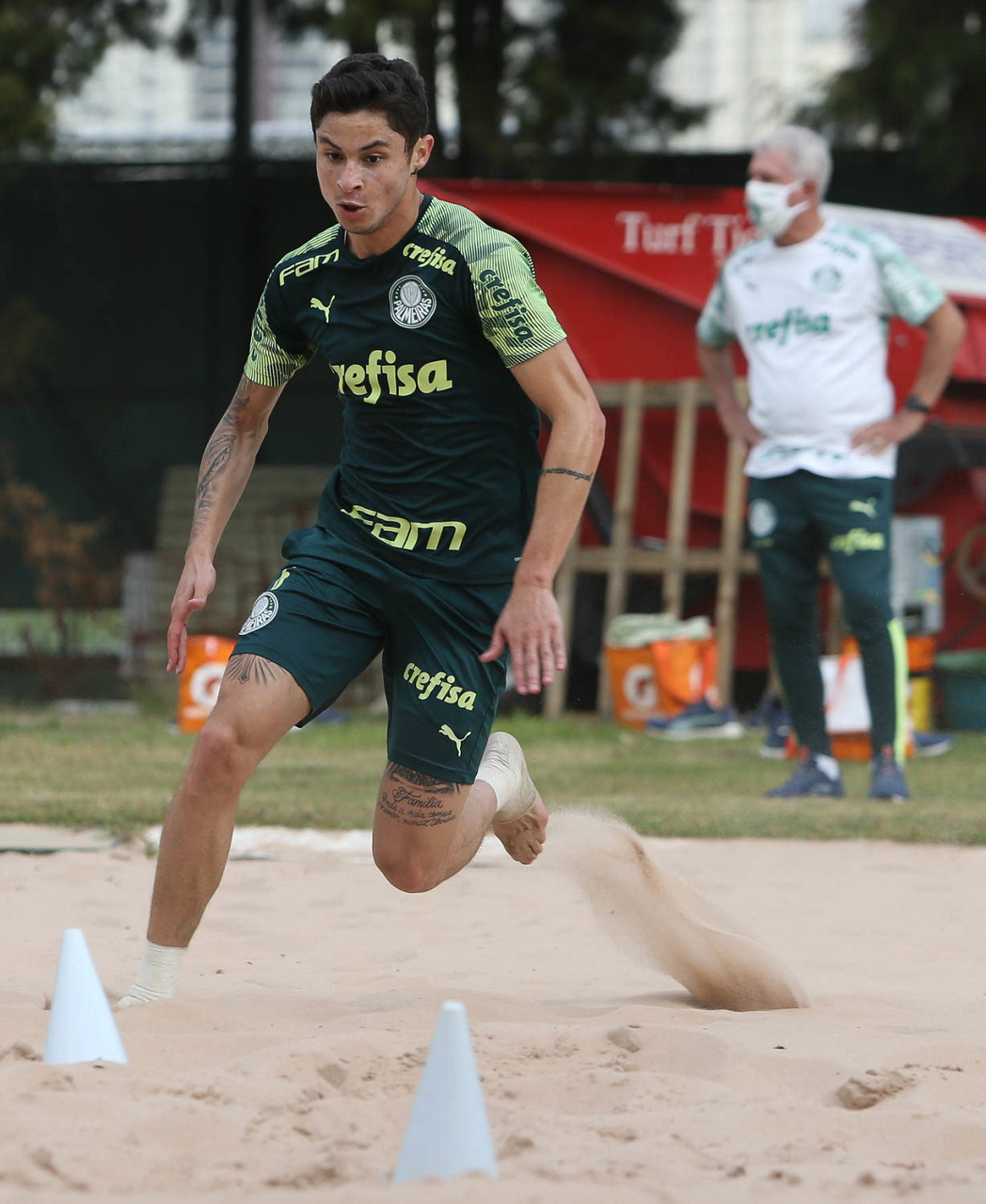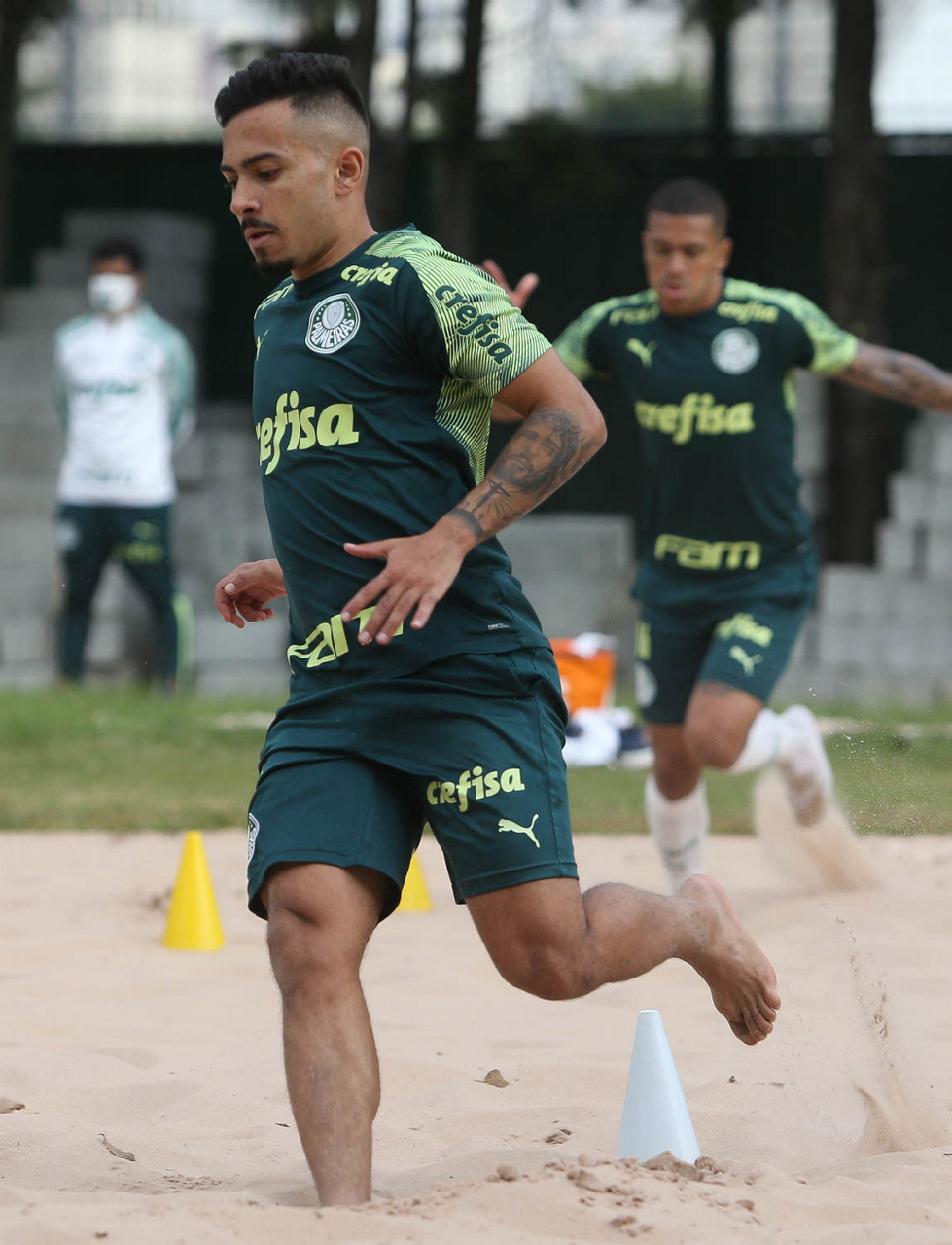 O jogador Gustavo Gómez, da SE Palmeiras, durante treinamento, na Academia de Futebol. (Foto: Cesar Greco)