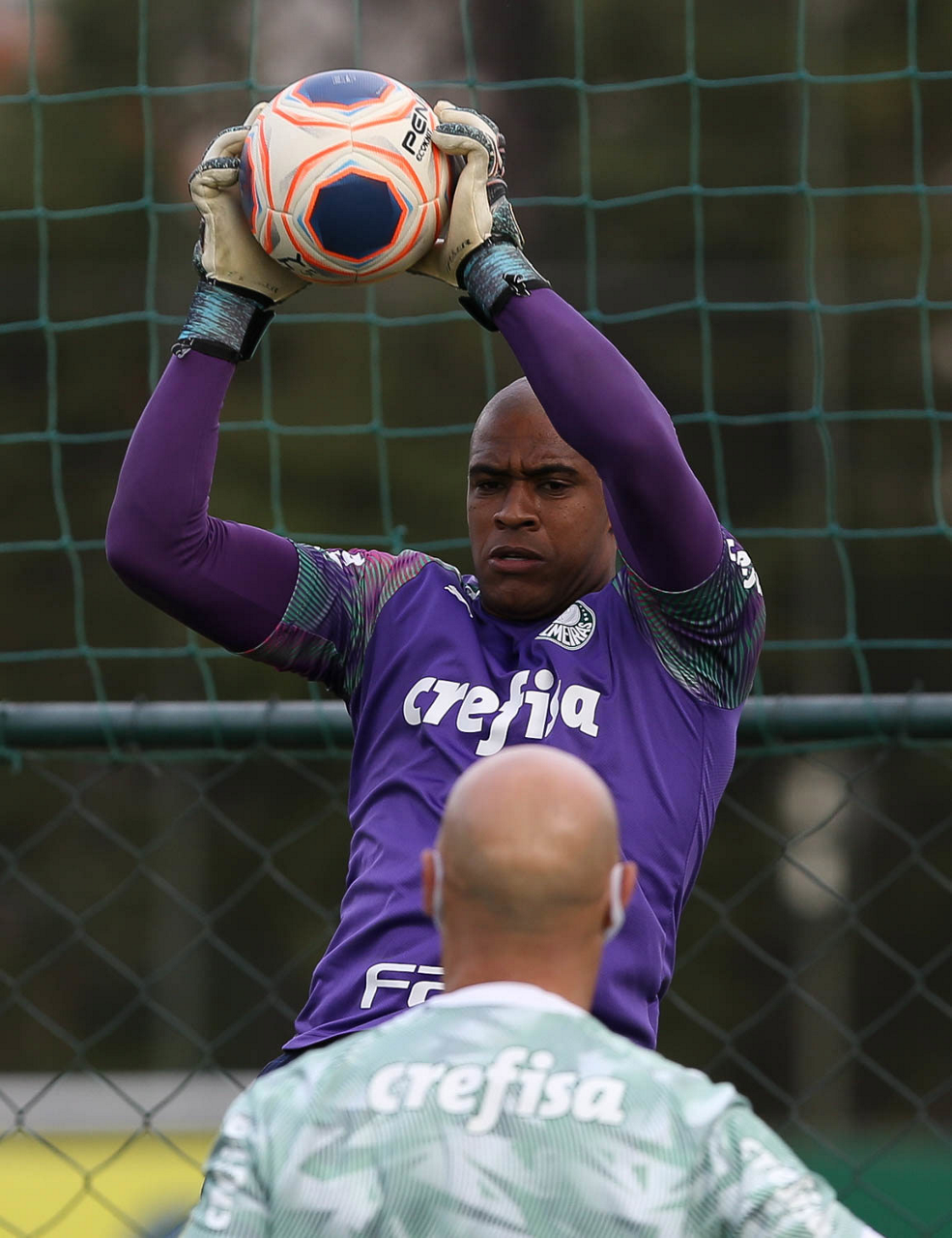 O goleiro Weverton, da SE Palmeiras, durante treinamento, na Academia de Futebol. (Foto: Cesar Greco)