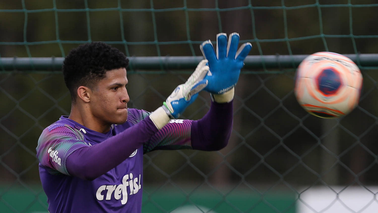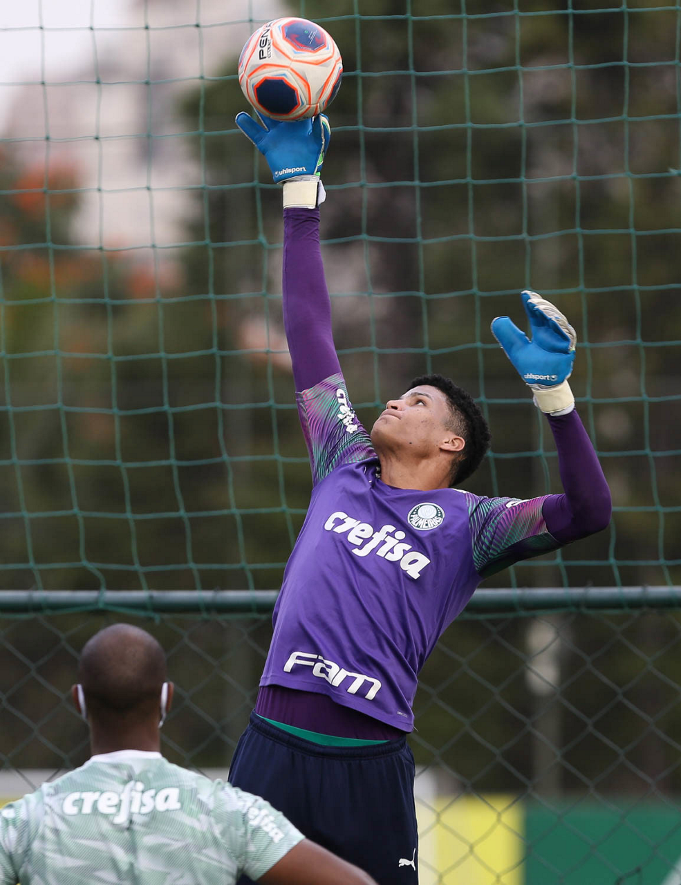 O goleiro Vinicius, da SE Palmeiras, durante treinamento, na Academia de Futebol. (Foto: Cesar Greco)