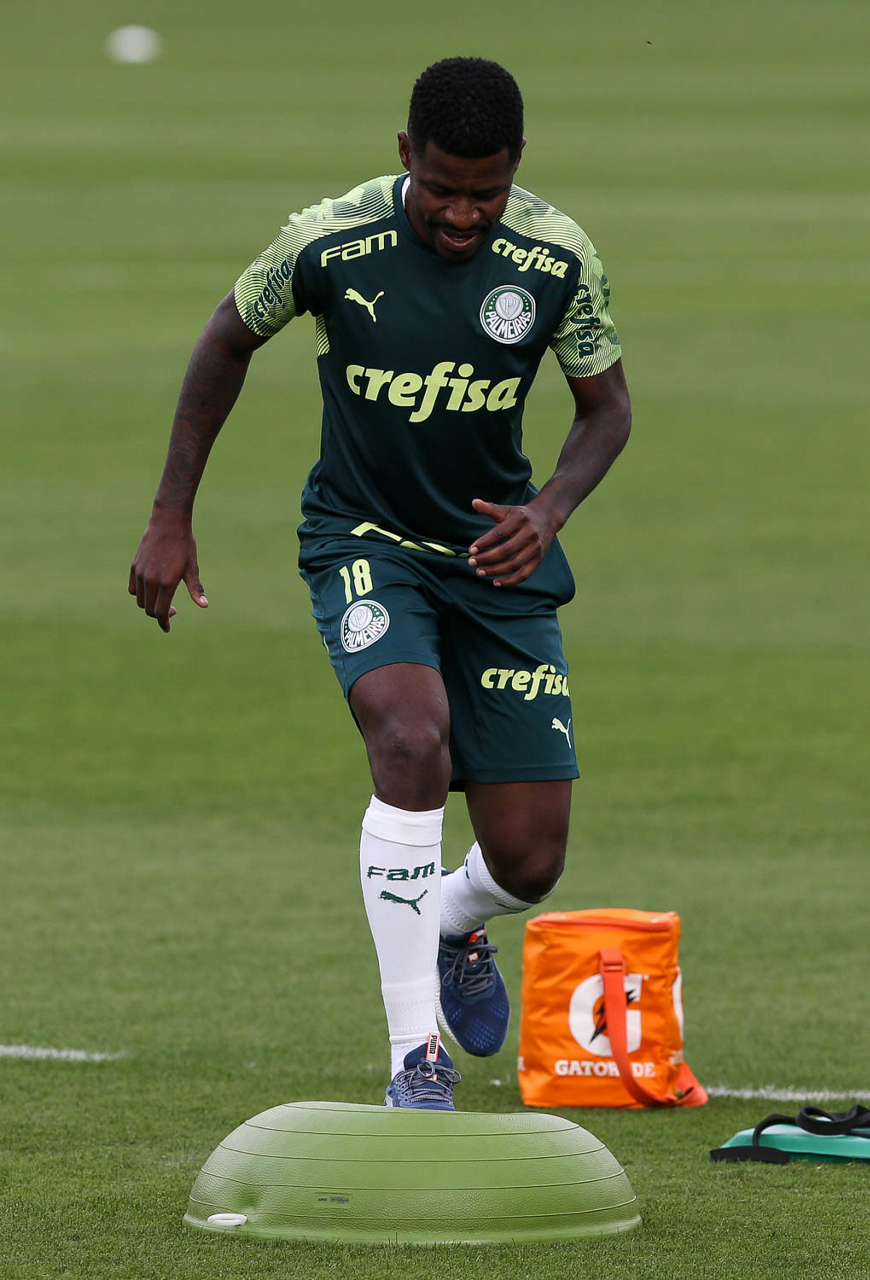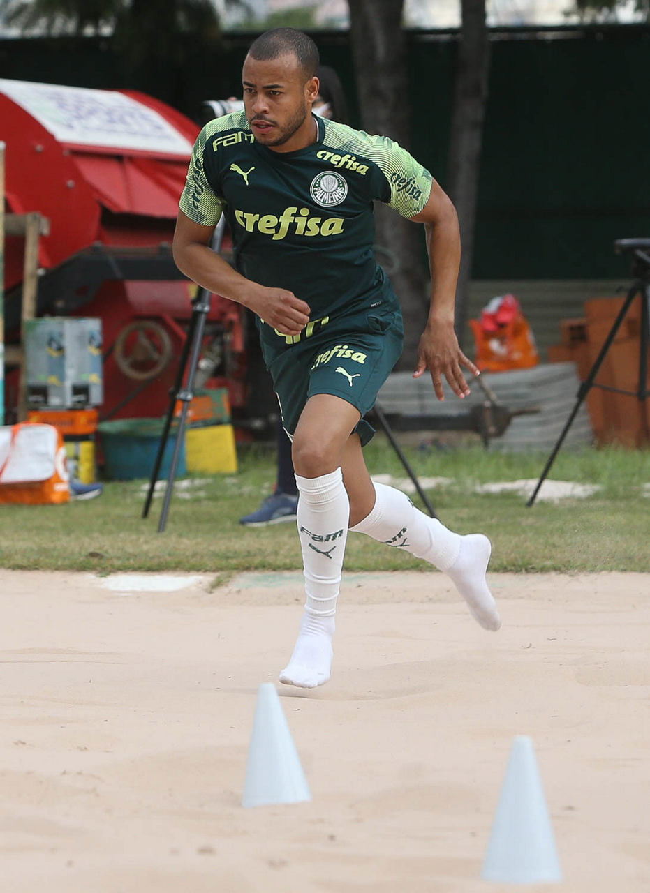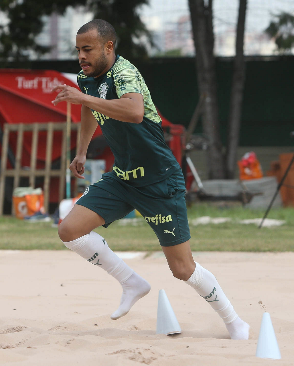 O jogador Mayke, da SE Palmeiras, durante treinamento, na Academia de Futebol. (Foto: Cesar Greco)