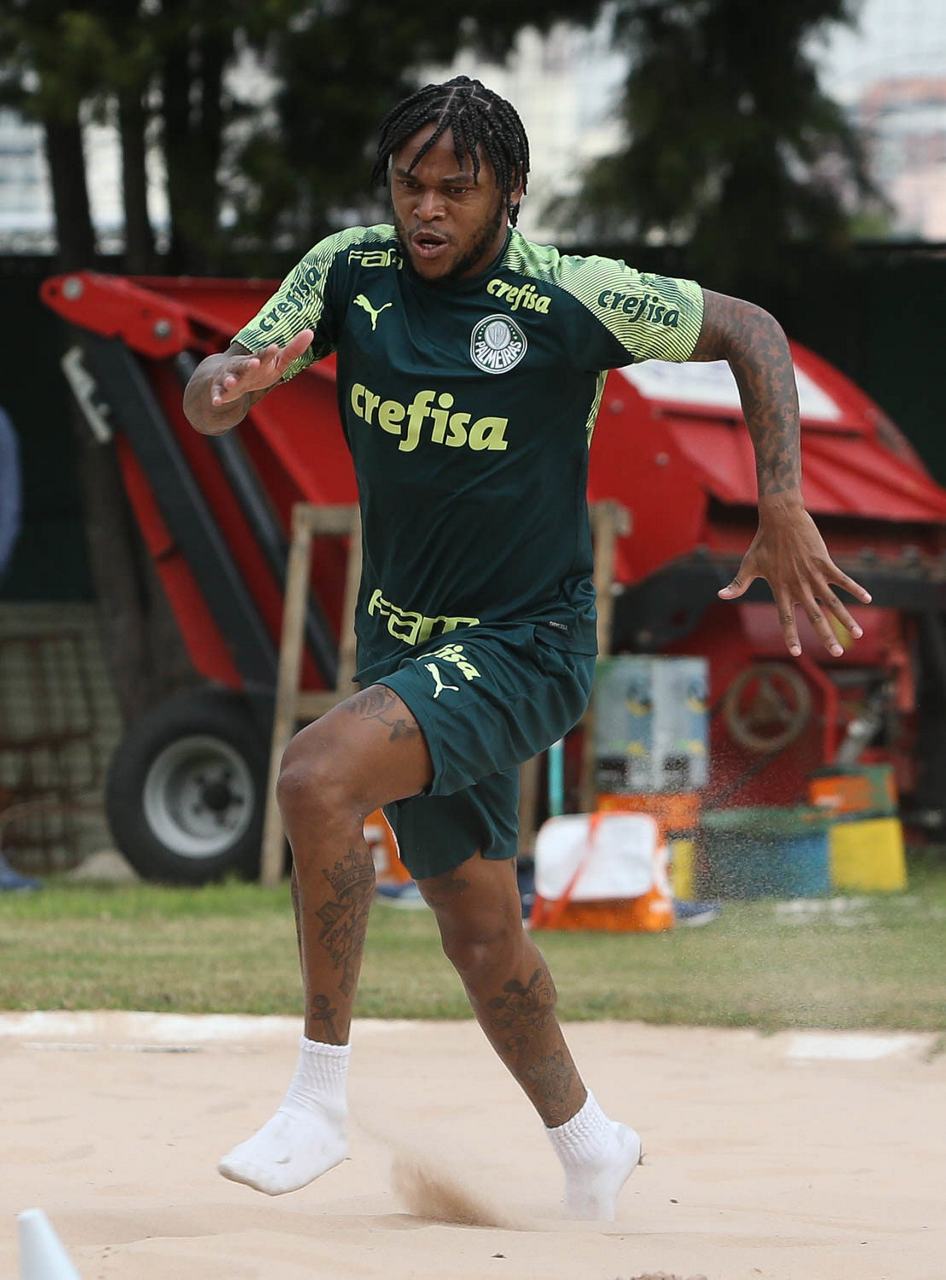 O jogador Wesley, da SE Palmeiras, durante treinamento, na Academia de Futebol. (Foto: Cesar Greco)