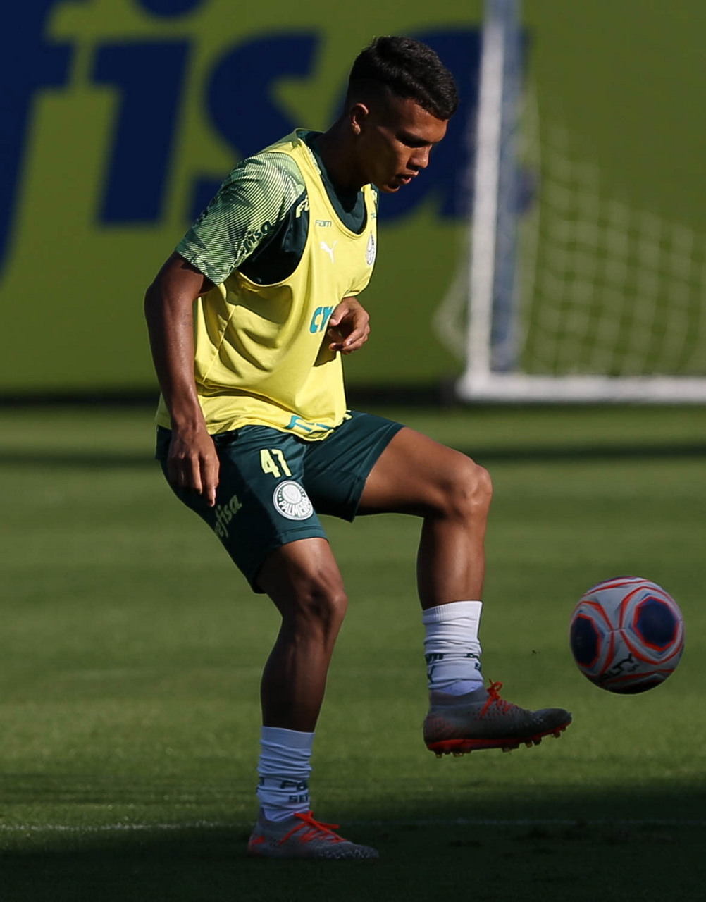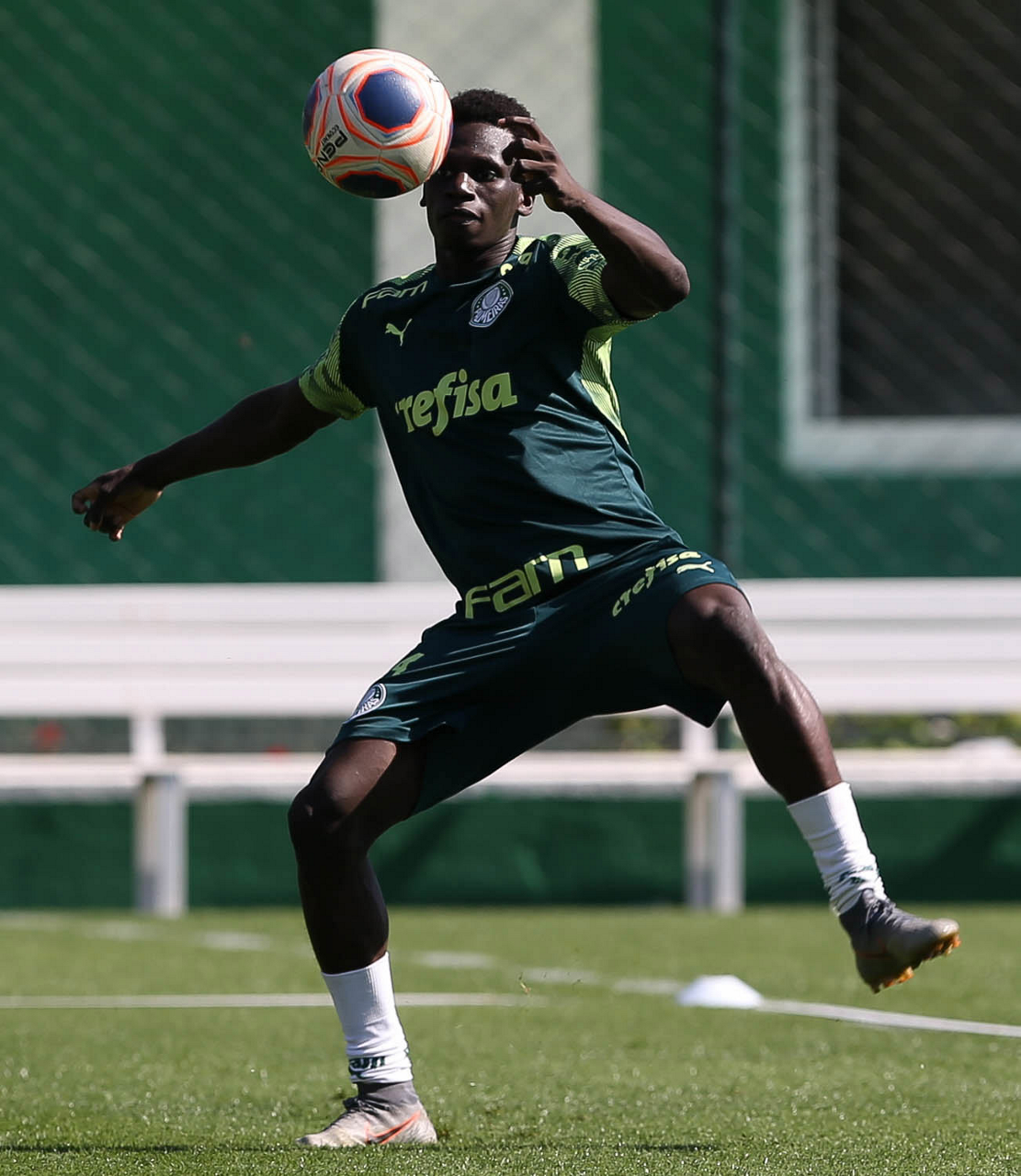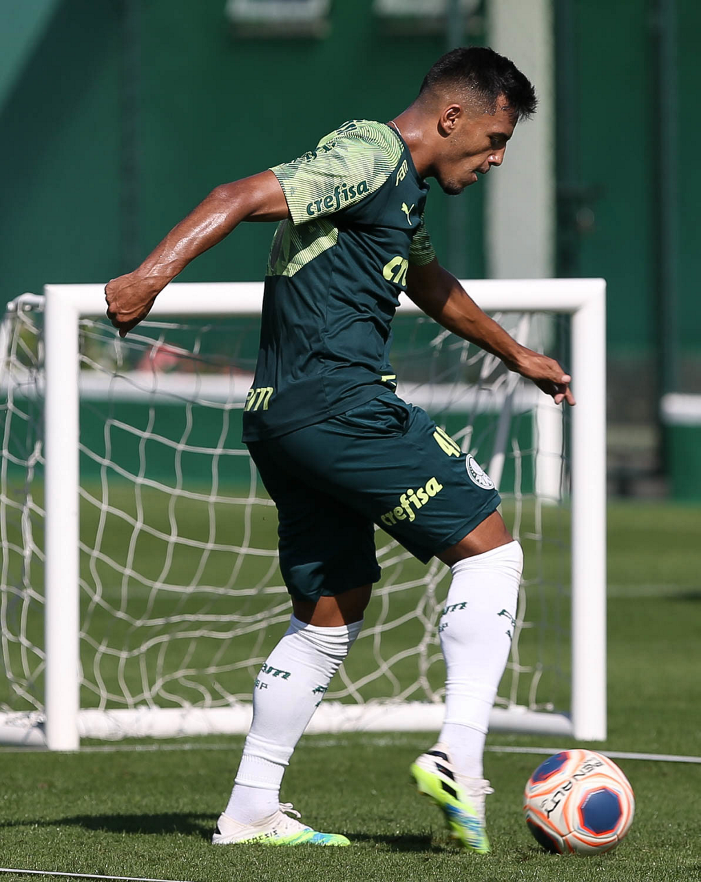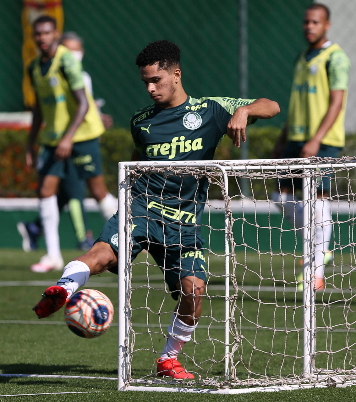 O jogador Gabriel Veron, da SE Palmeiras, durante treinamento, na Academia de Futebol. (Foto: Cesar Greco)
