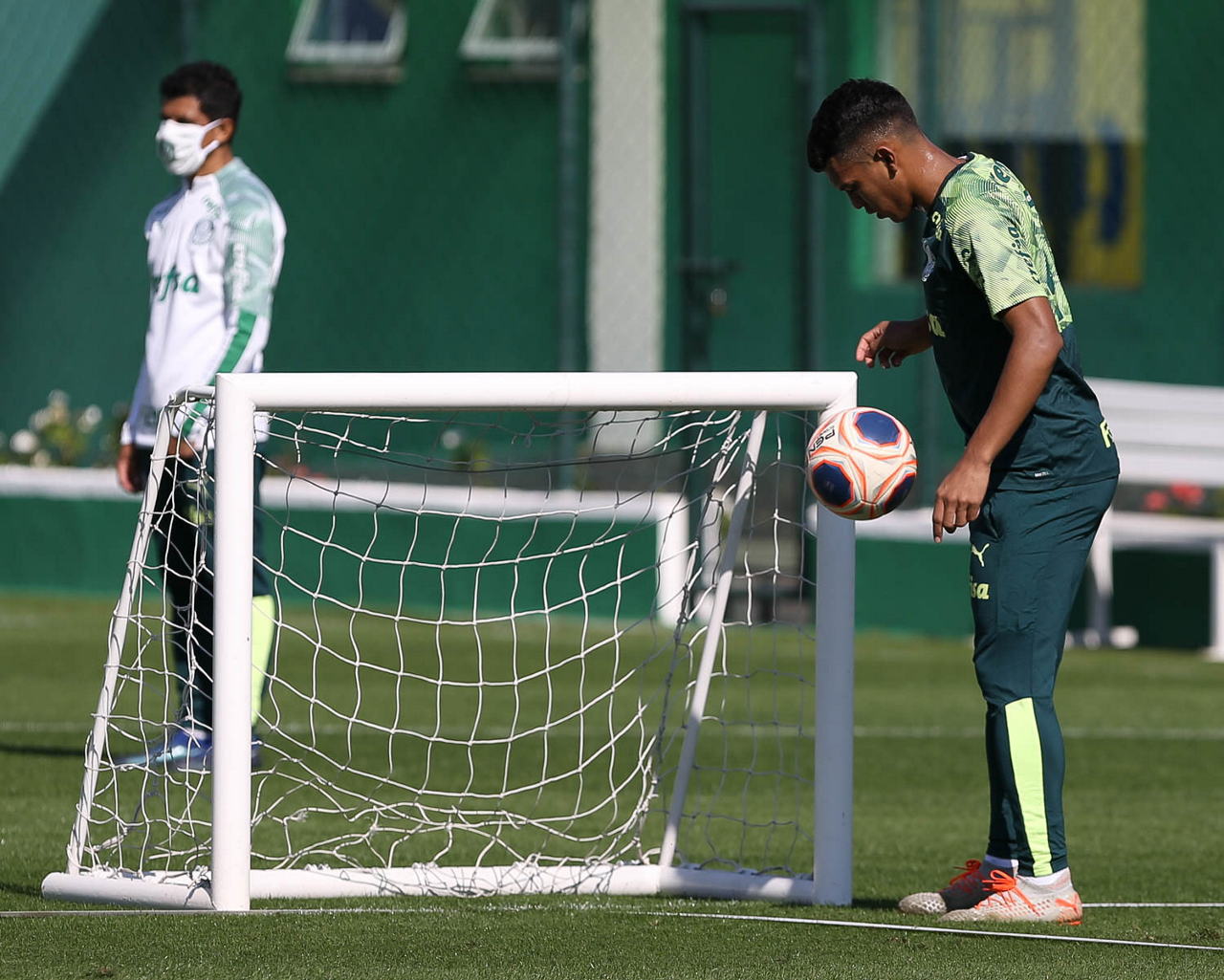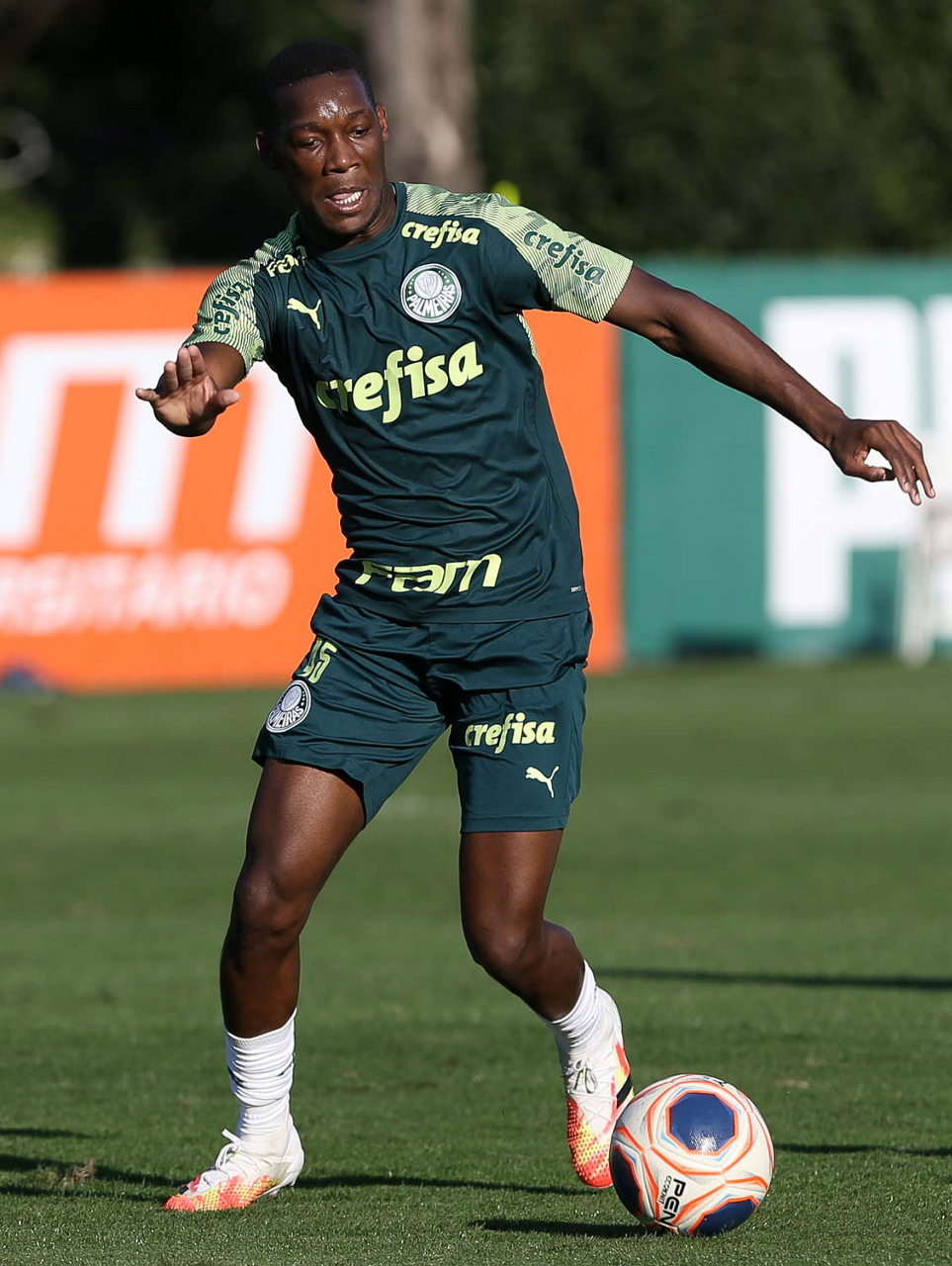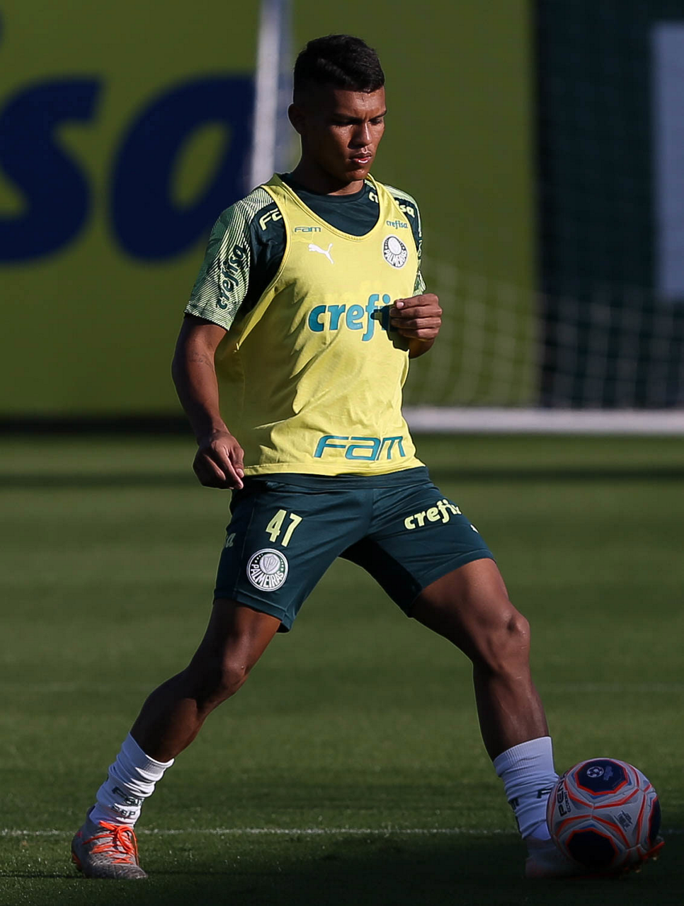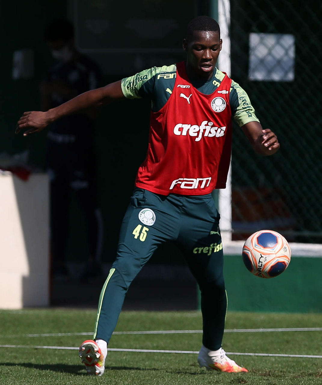 O jogador Gabriel Veron, da SE Palmeiras, durante treinamento, na Academia de Futebol. (Foto: Cesar Greco)