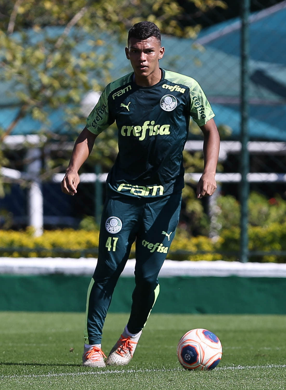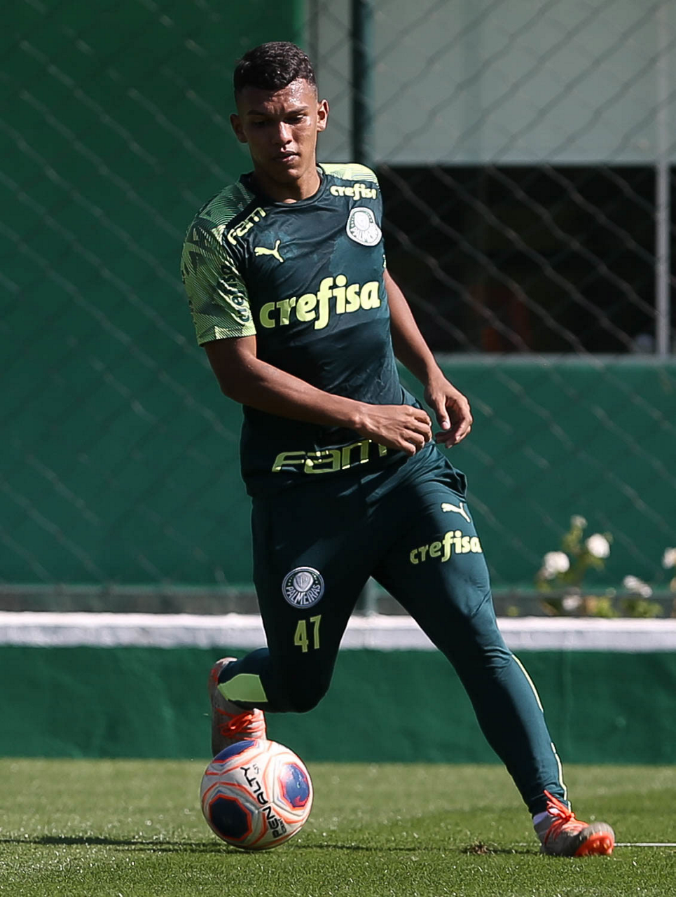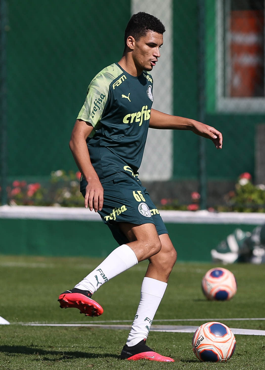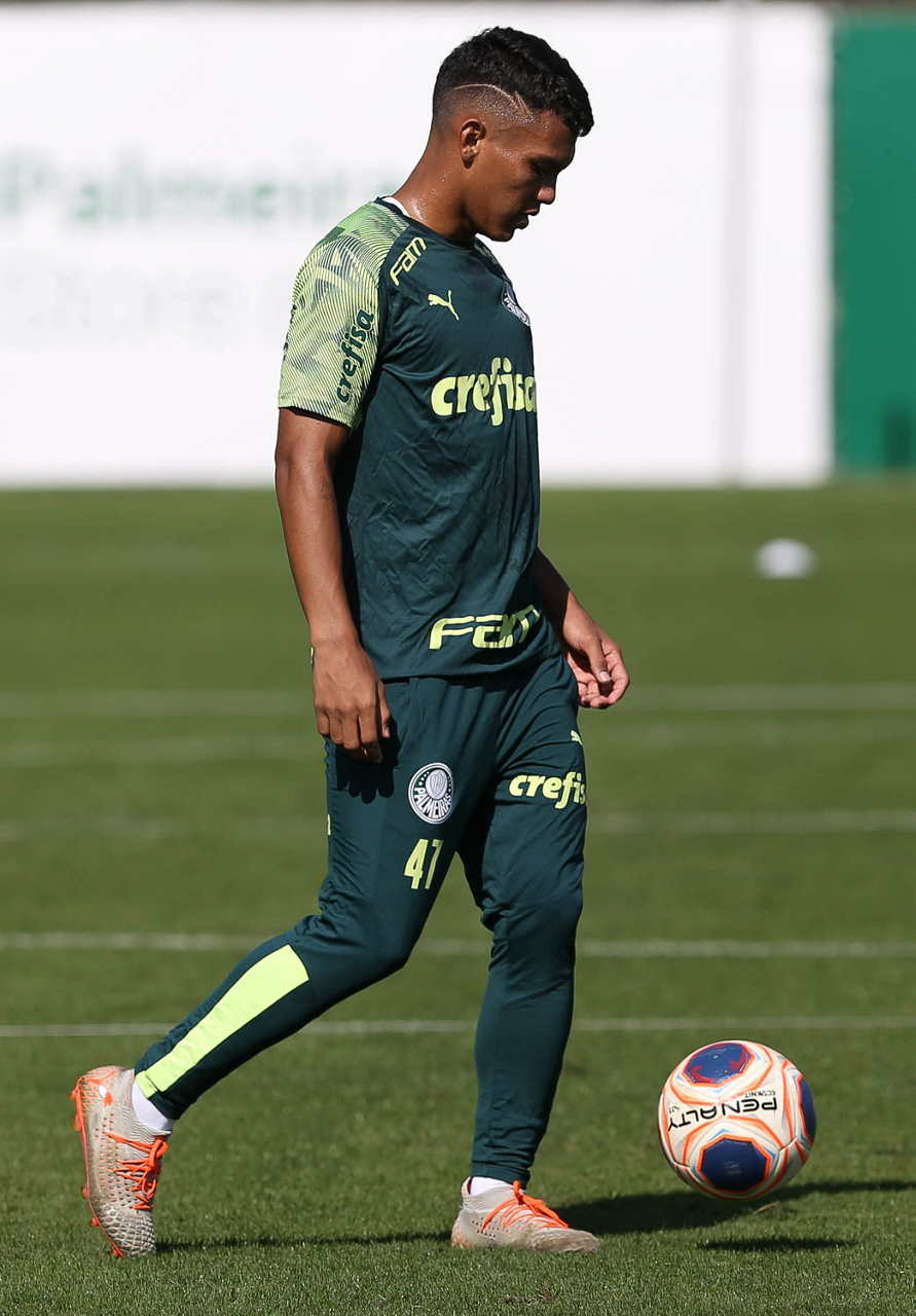 O jogador Gabriel Menino, da SE Palmeiras, durante treinamento, na Academia de Futebol. (Foto: Cesar Greco)