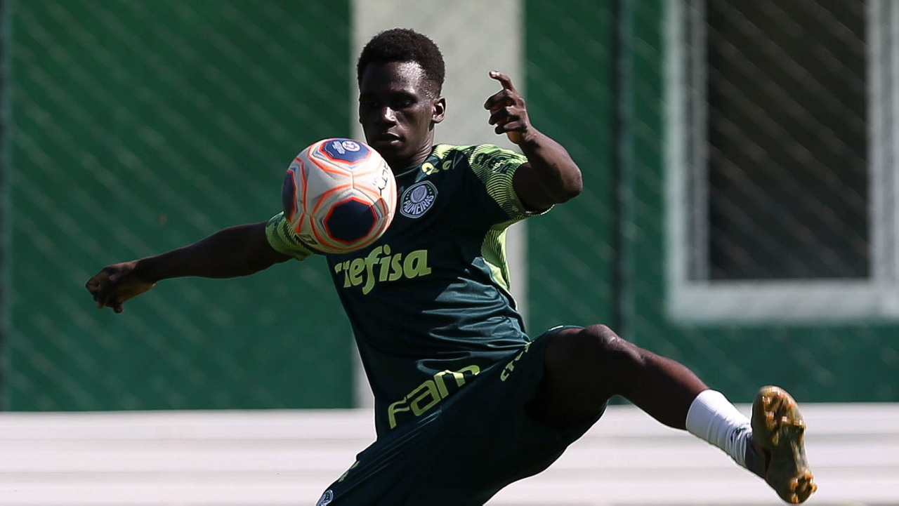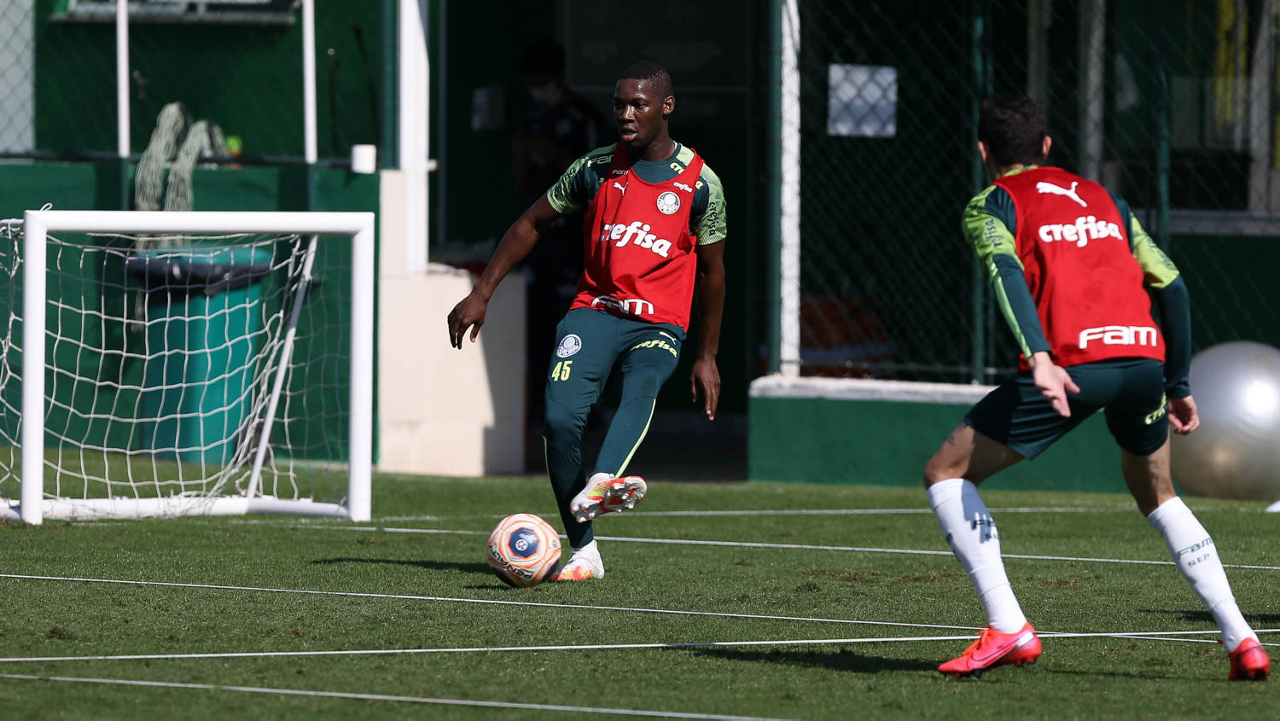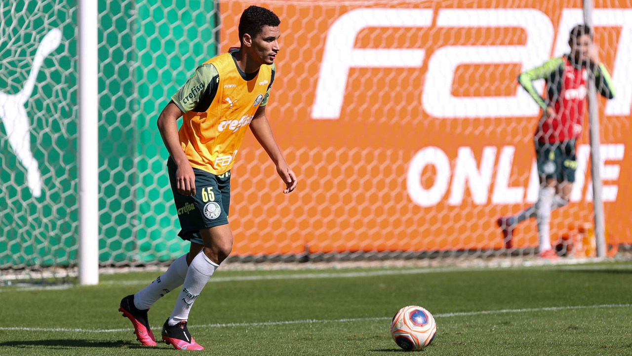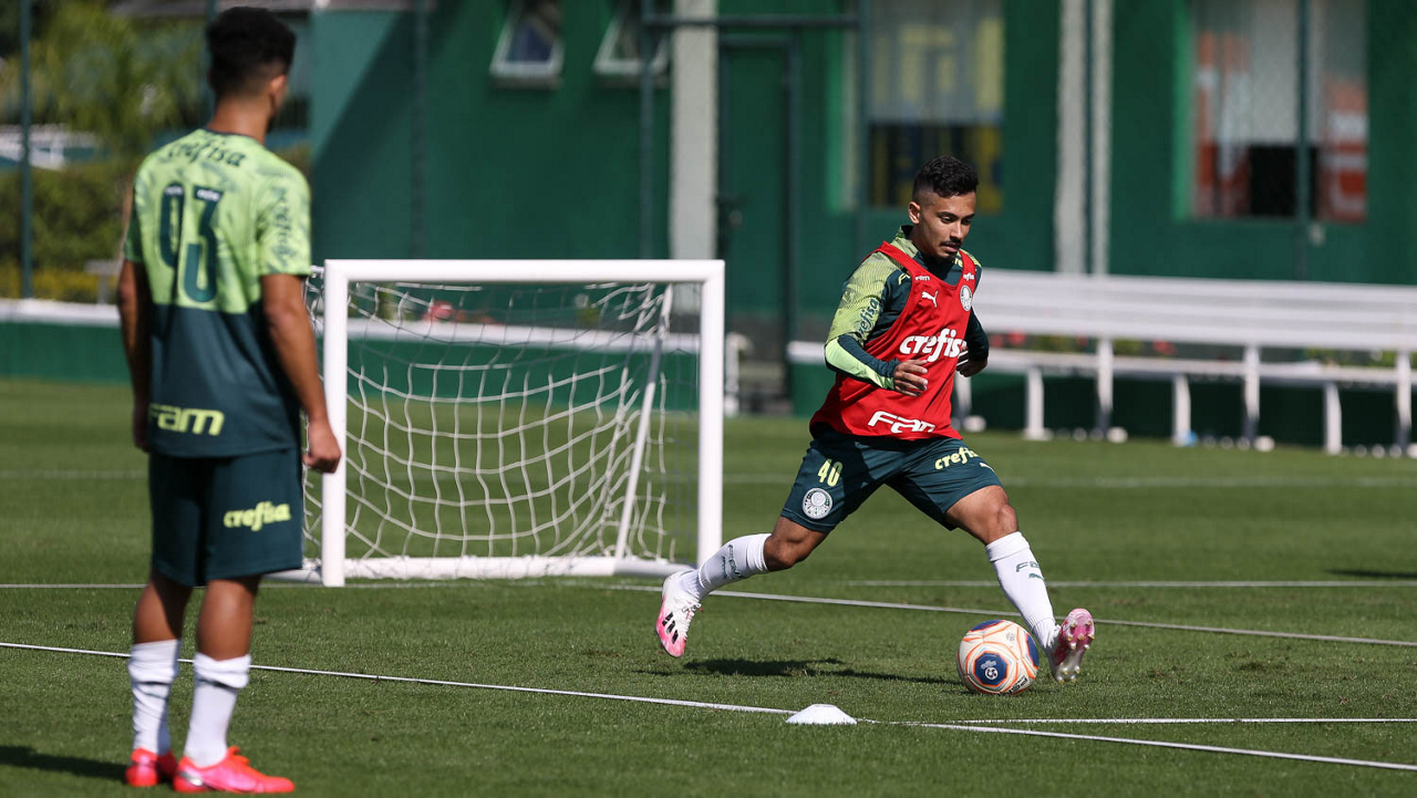 O jogador Gabriel Menino, da SE Palmeiras, durante treinamento, na Academia de Futebol. (Foto: Cesar Greco)
