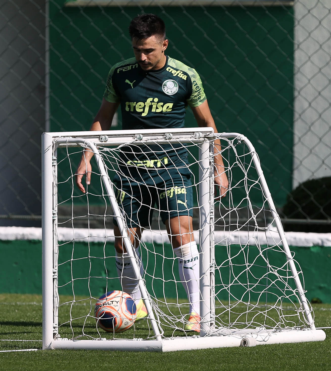 O jogador Alan, da SE Palmeiras, durante treinamento, na Academia de Futebol. (Foto: Cesar Greco)