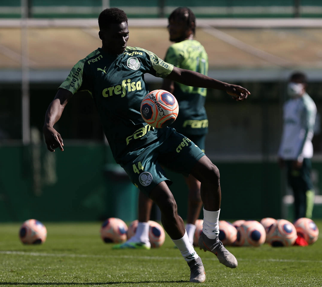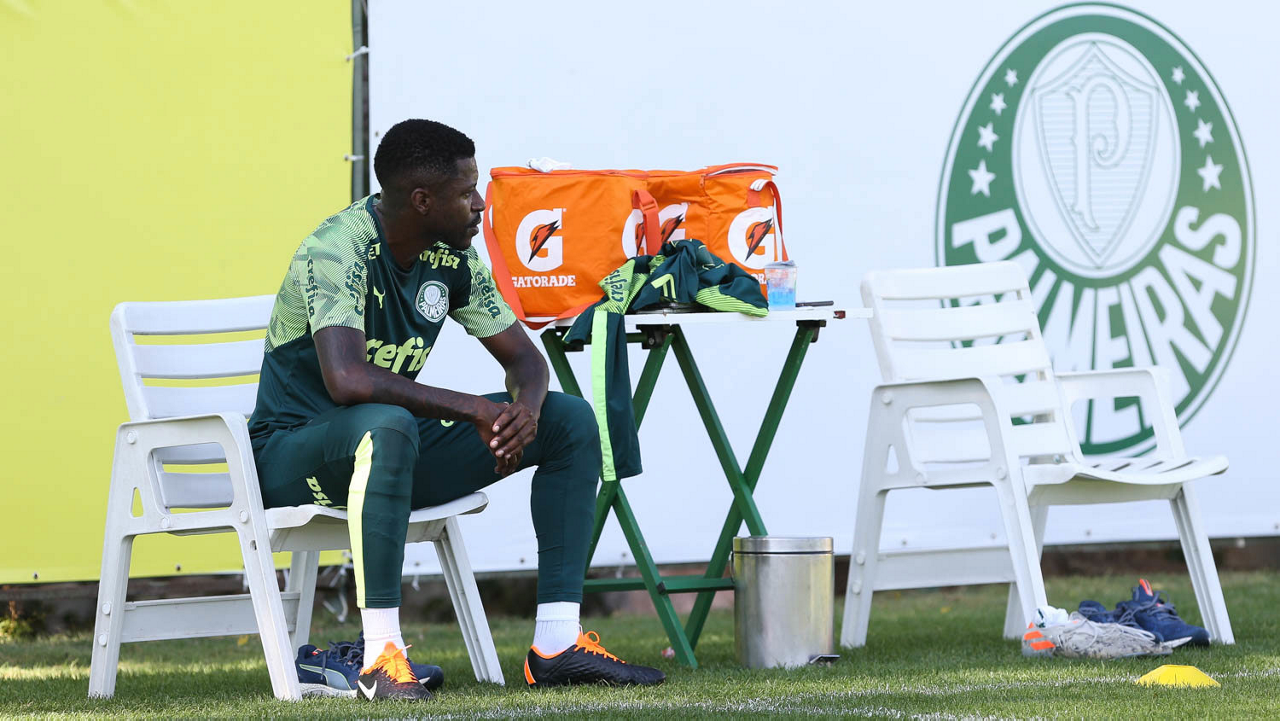 O jogador Mayke, da SE Palmeiras, durante treinamento, na Academia de Futebol. (Foto: Cesar Greco)