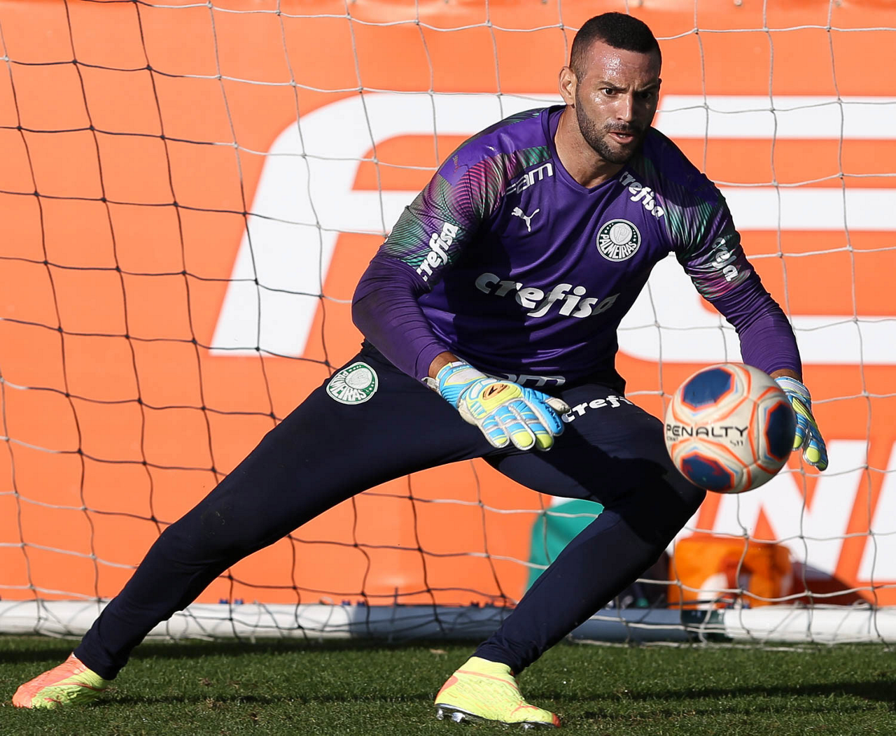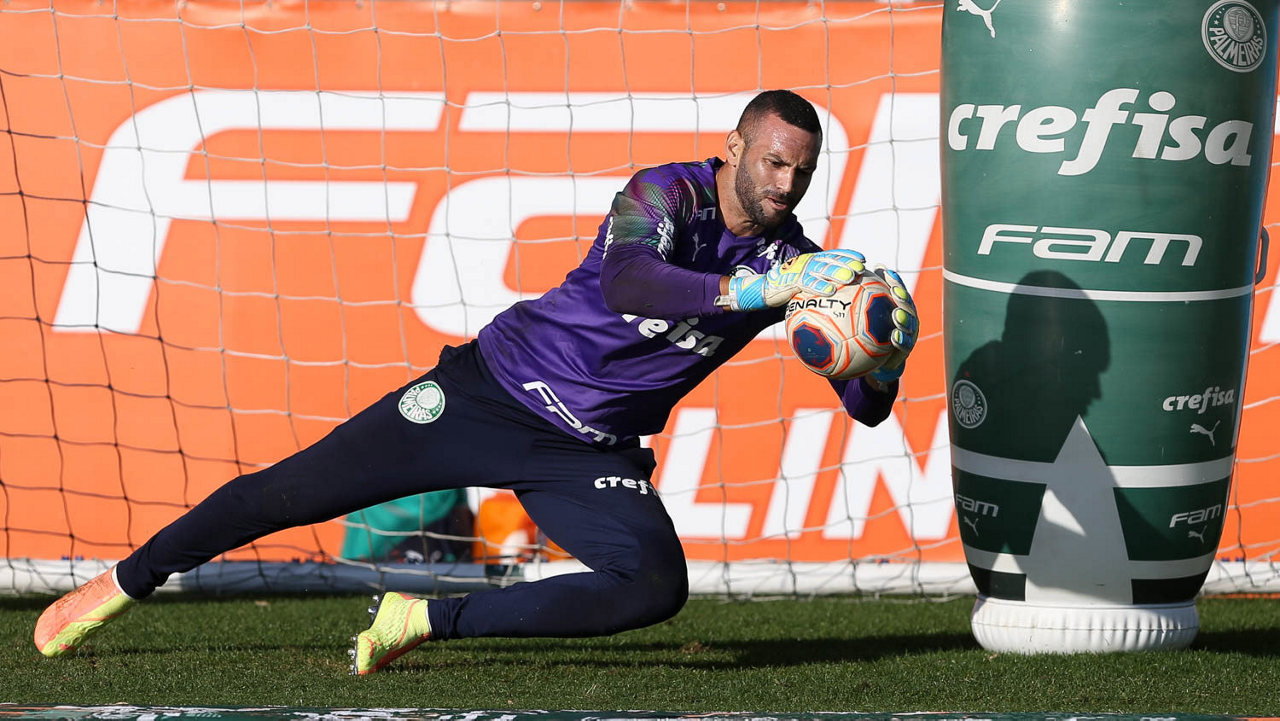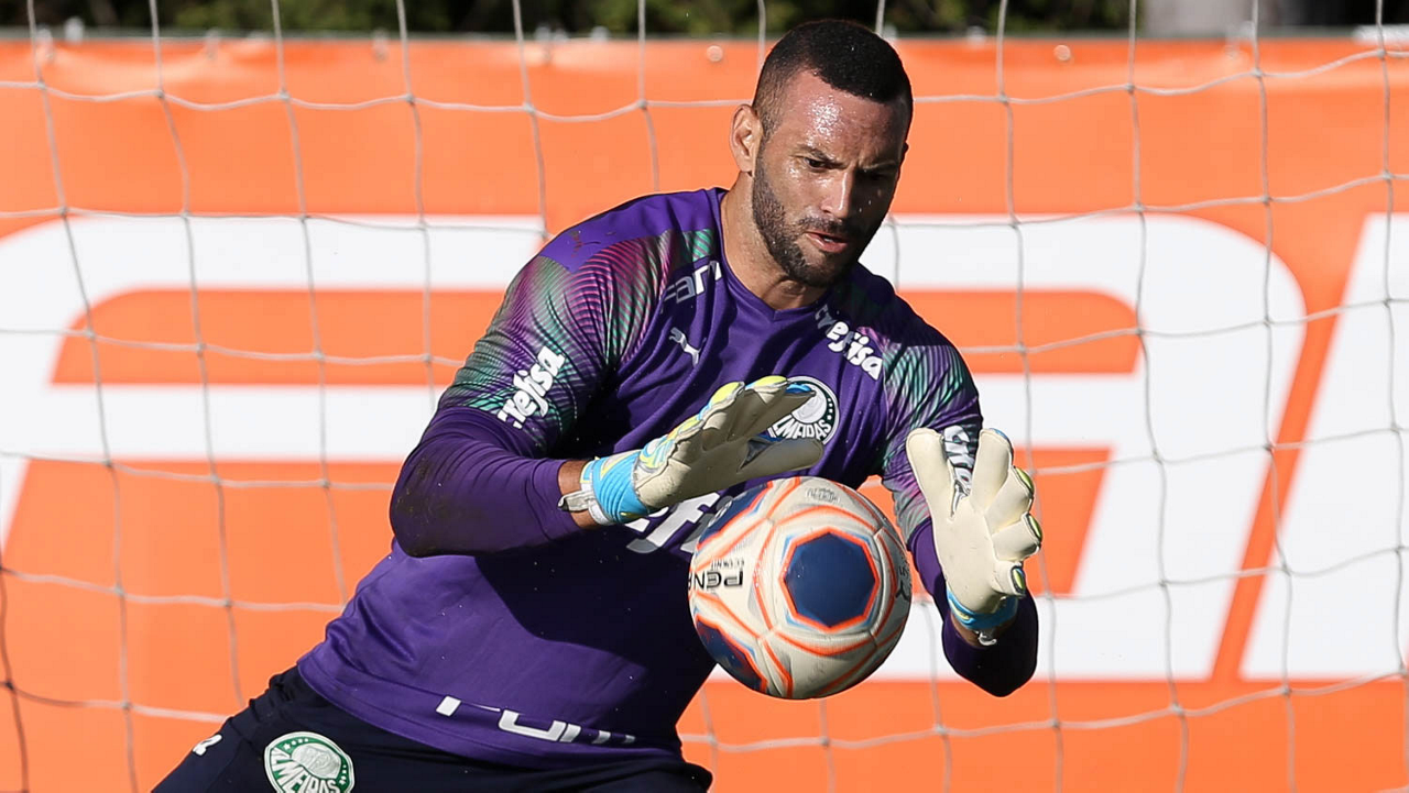 O goleiro Weverton, da SE Palmeiras, durante treinamento, na Academia de Futebol. (Foto: Cesar Greco)