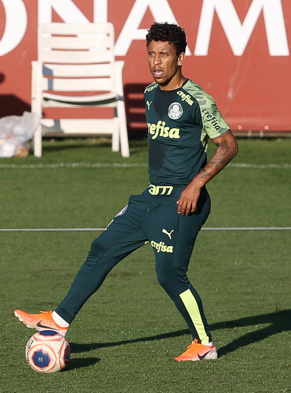 O jogador Marcos Rocha, da SE Palmeiras, durante treinamento, na Academia de Futebol. (Foto: Cesar Greco)