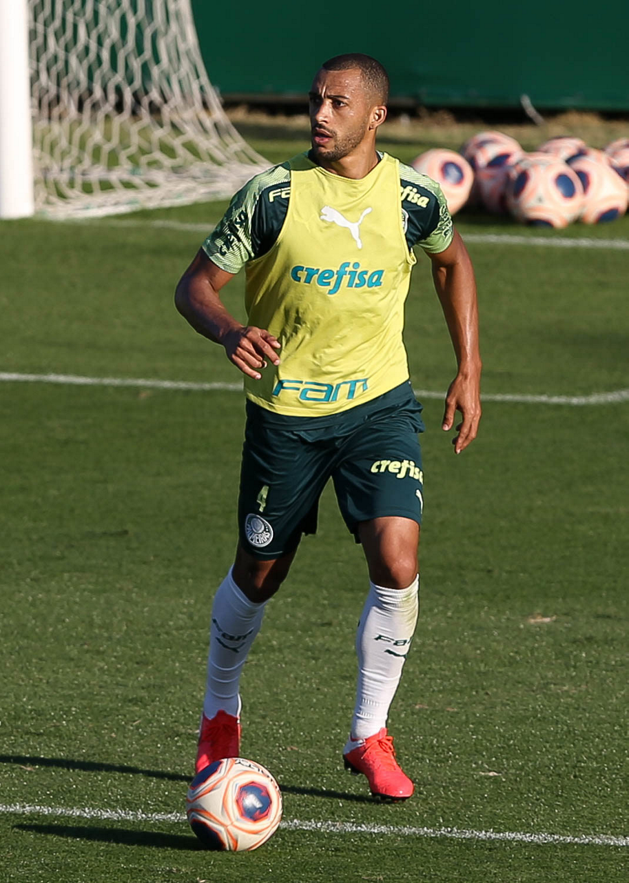 O jogador Gustavo Gómez, da SE Palmeiras, durante treinamento, na Academia de Futebol. (Foto: Cesar Greco)