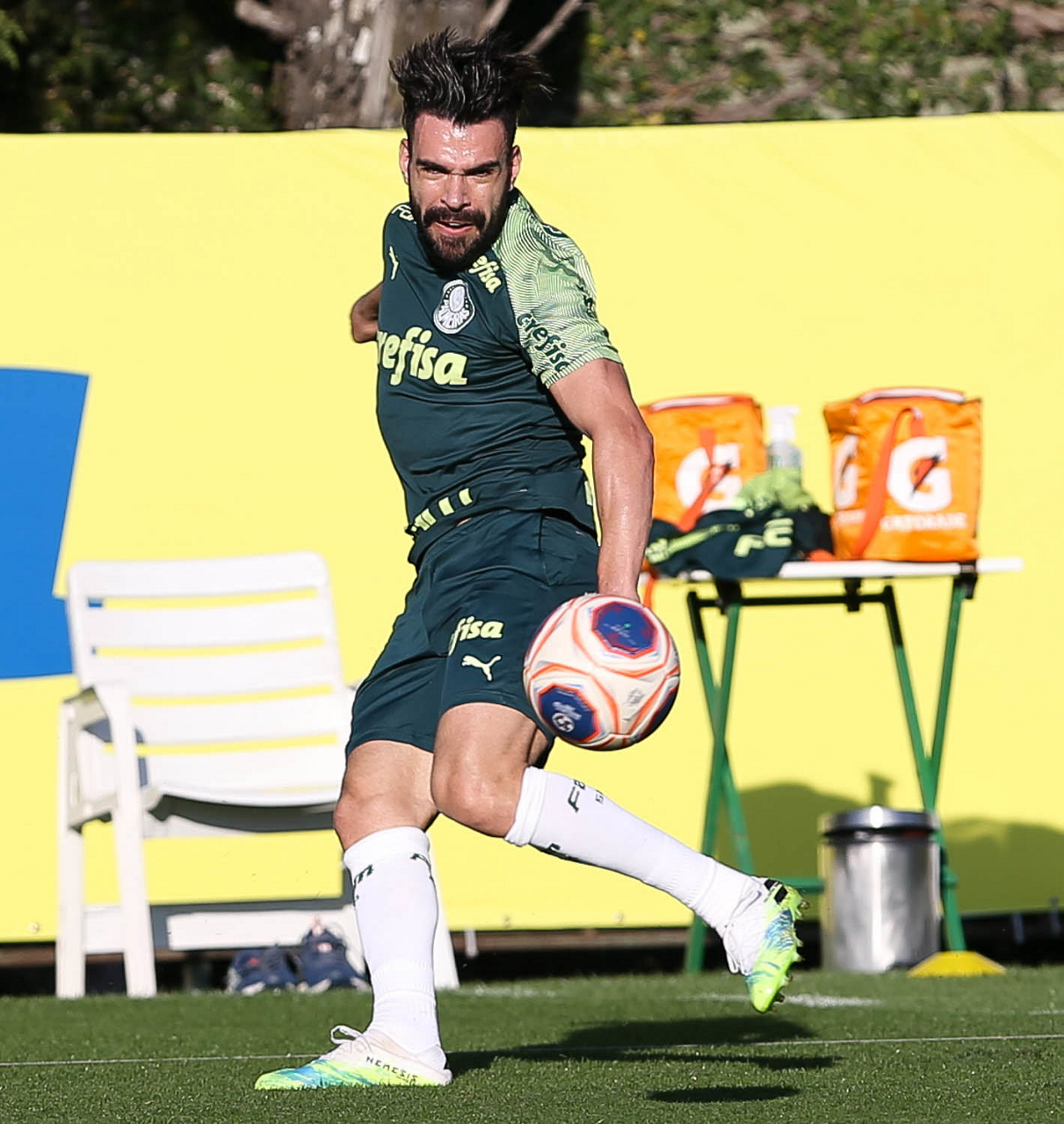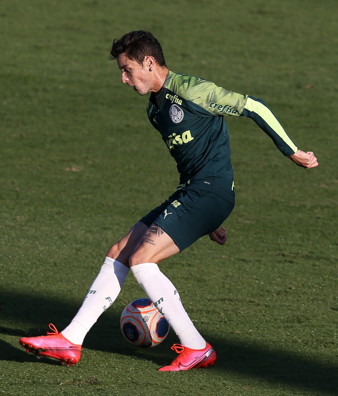 O jogador Patrick de Paula, da SE Palmeiras, durante treinamento, na Academia de Futebol. (Foto: Cesar Greco)