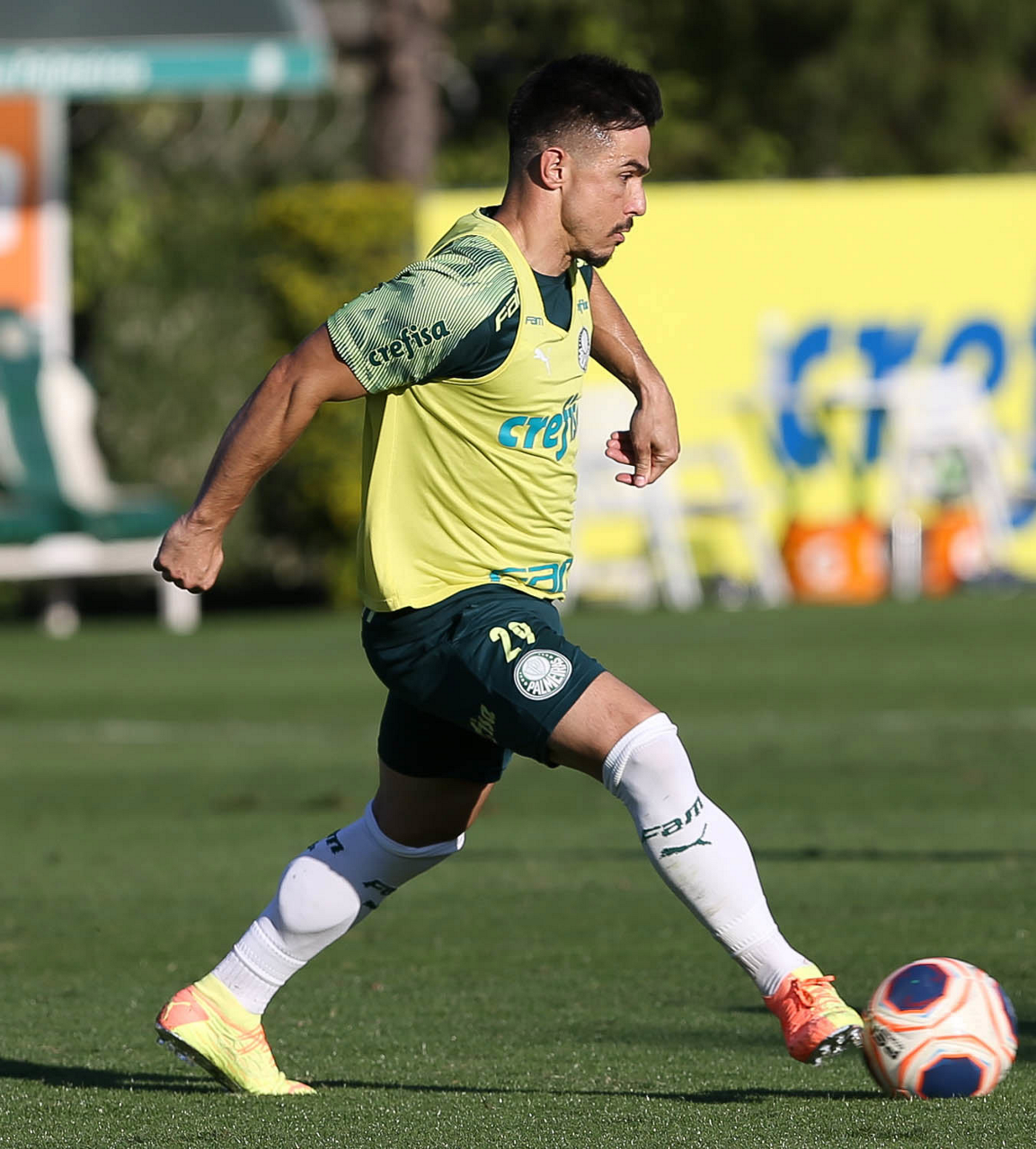 O jogador Bruno Henrique, da SE Palmeiras, durante treinamento, na Academia de Futebol. (Foto: Cesar Greco)