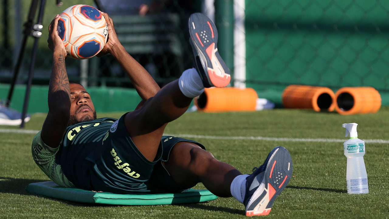 O jogador Victor Luis, da SE Palmeiras, durante treinamento, na Academia de Futebol. (Foto: Cesar Greco)