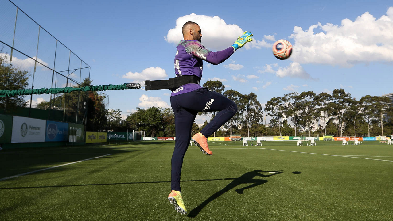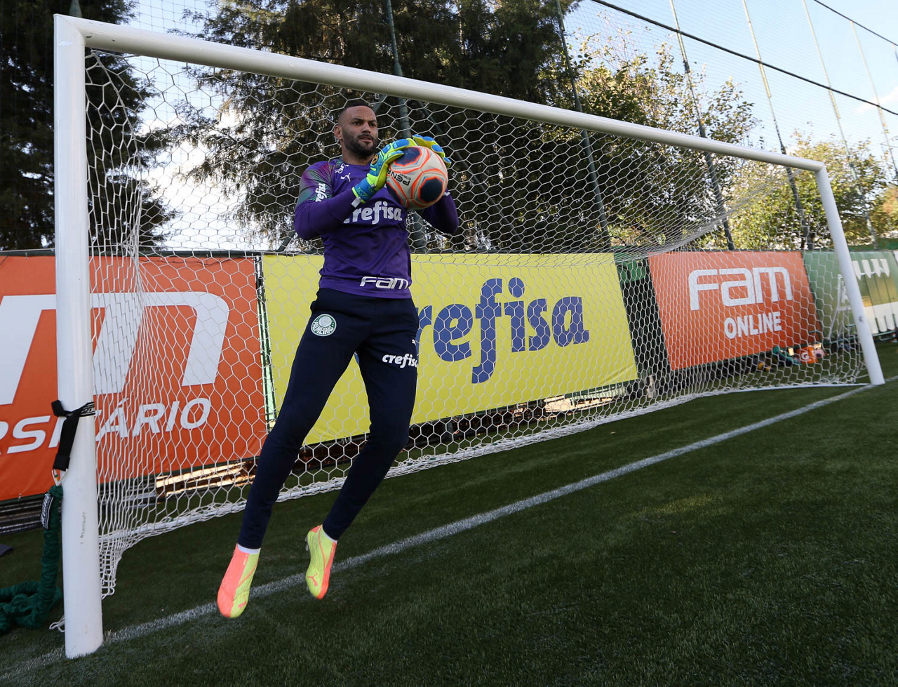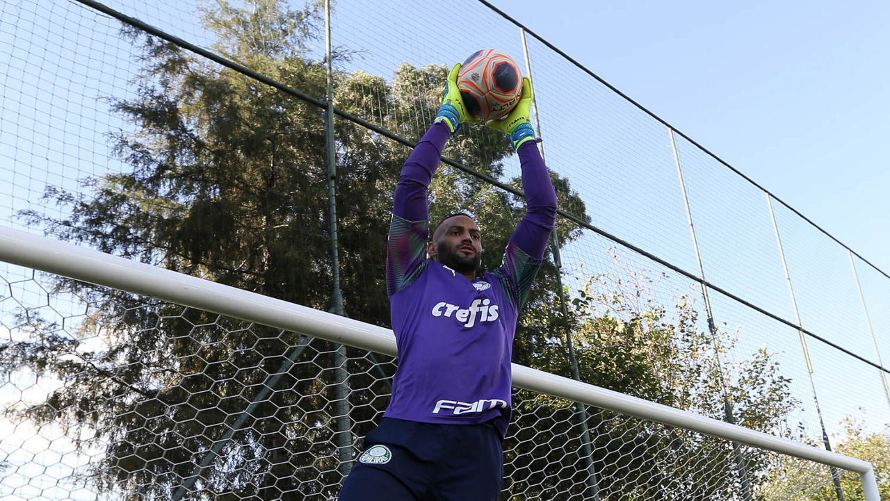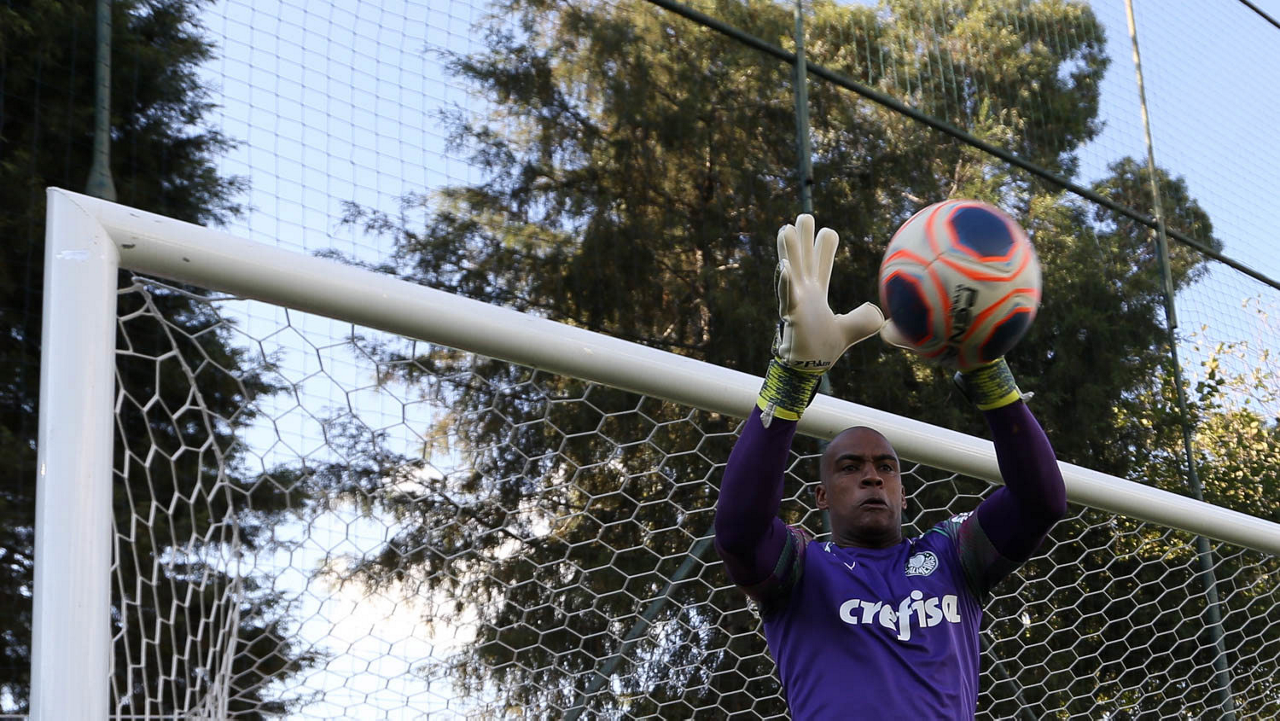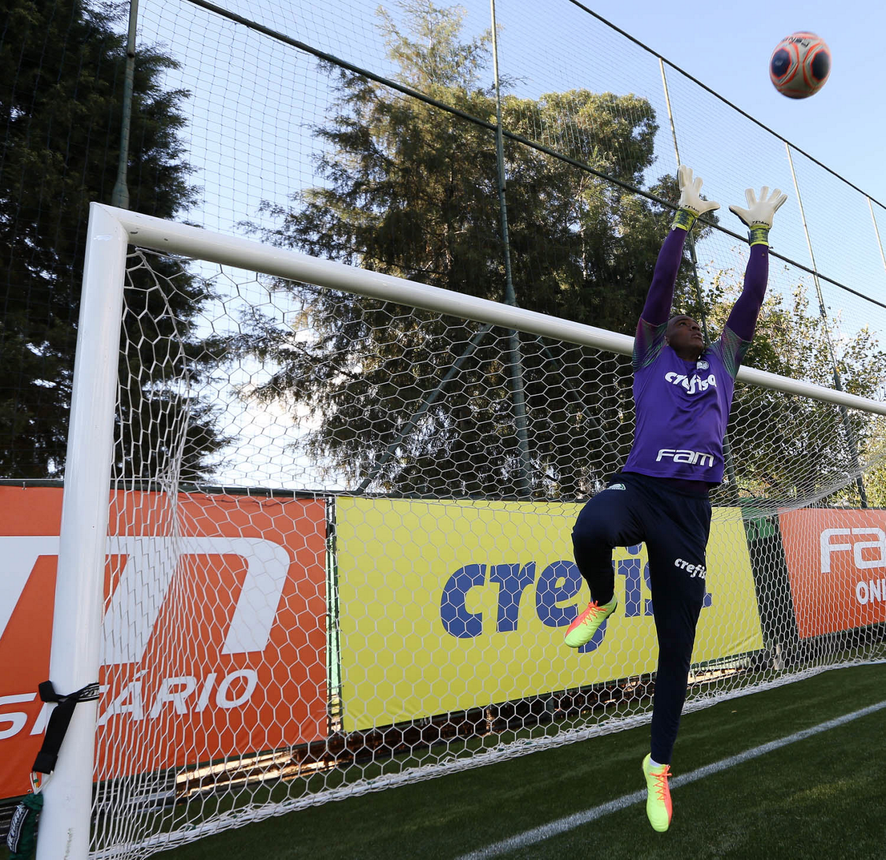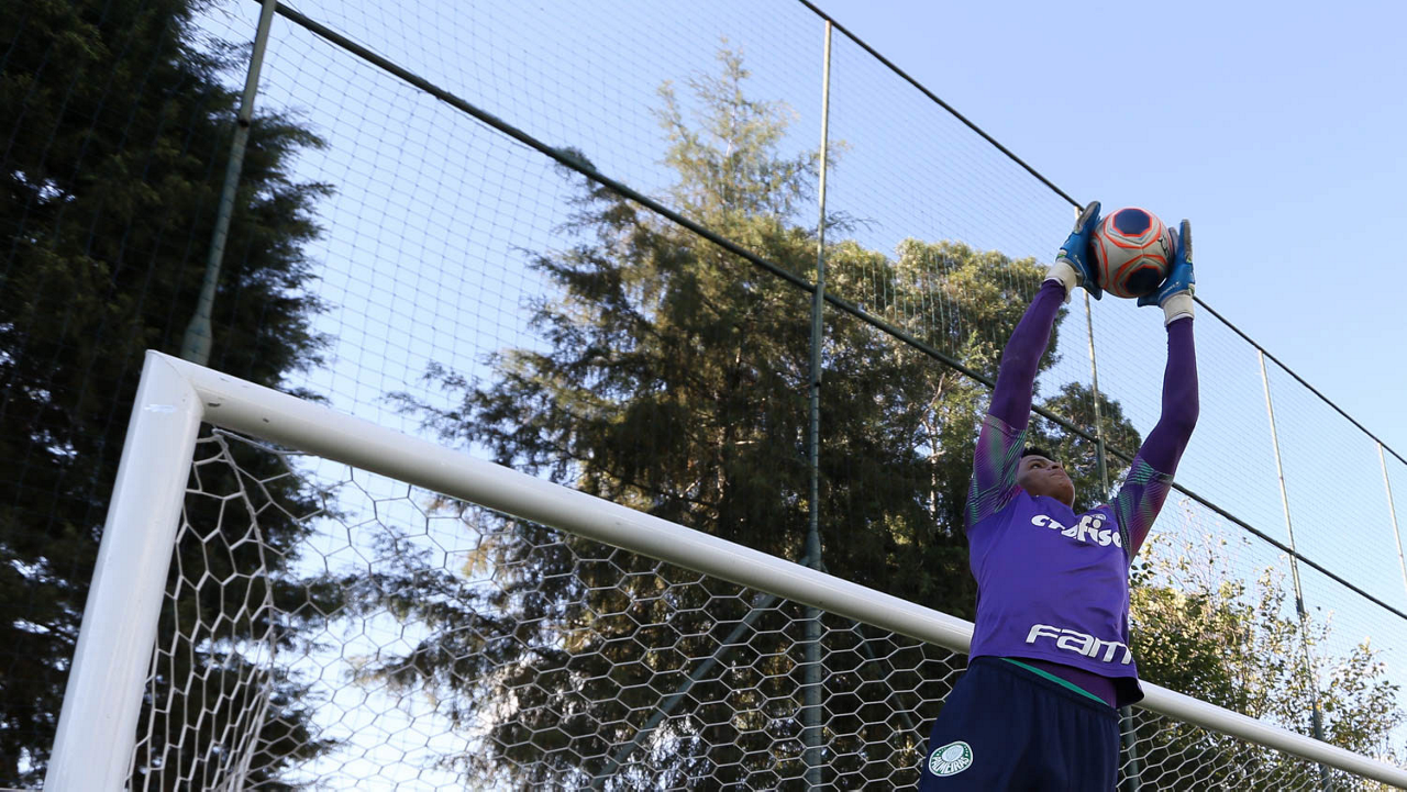 O goleiro Weverton, da SE Palmeiras, durante treinamento, na Academia de Futebol. (Foto: Cesar Greco)