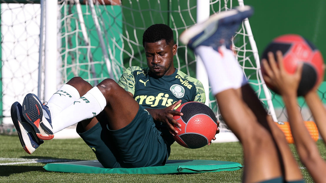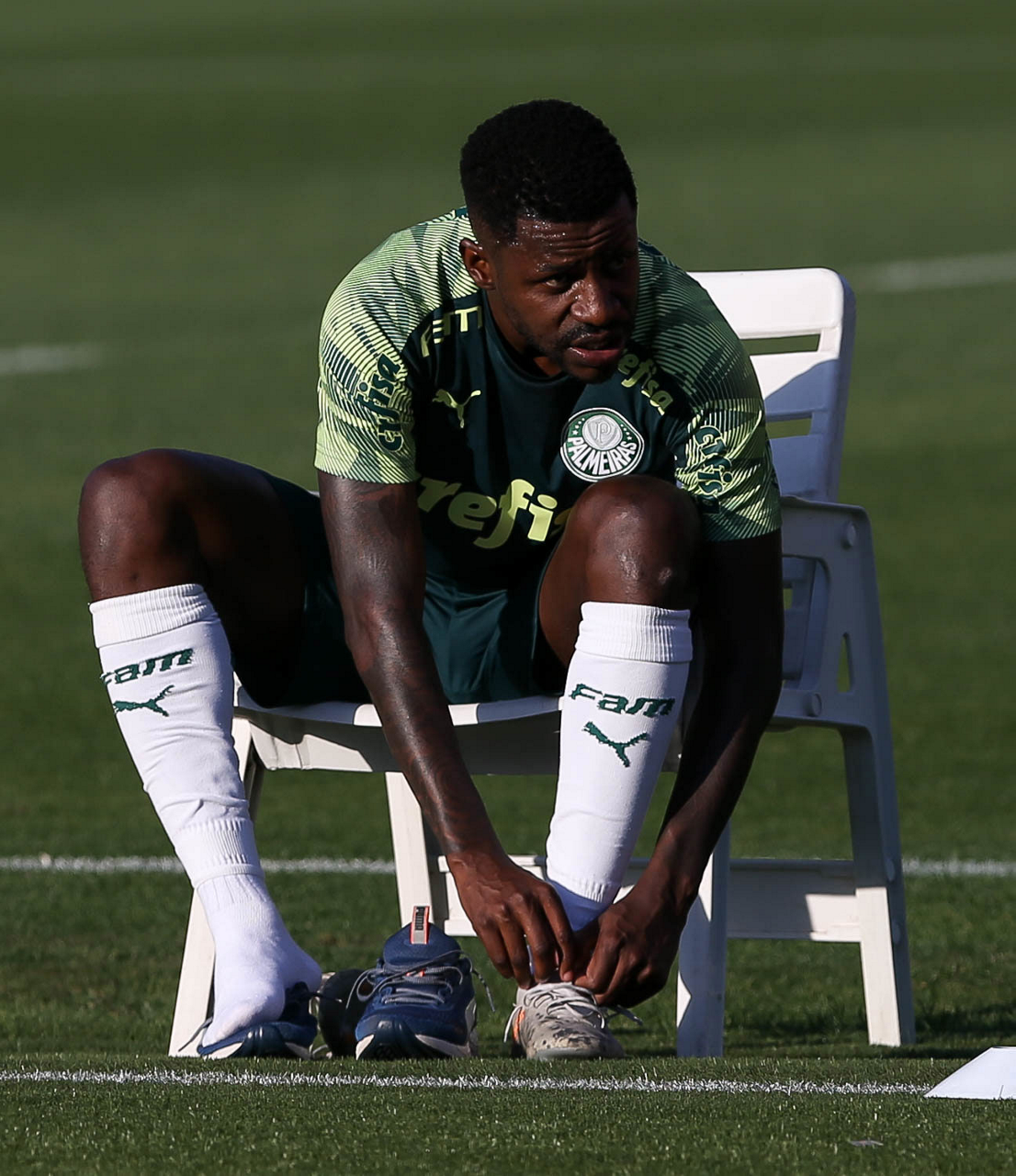 O jogador Emerson Santos, da SE Palmeiras, durante treinamento, na Academia de Futebol. (Foto: Cesar Greco)