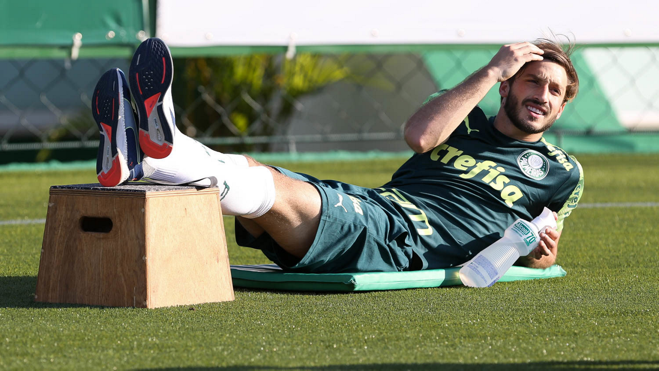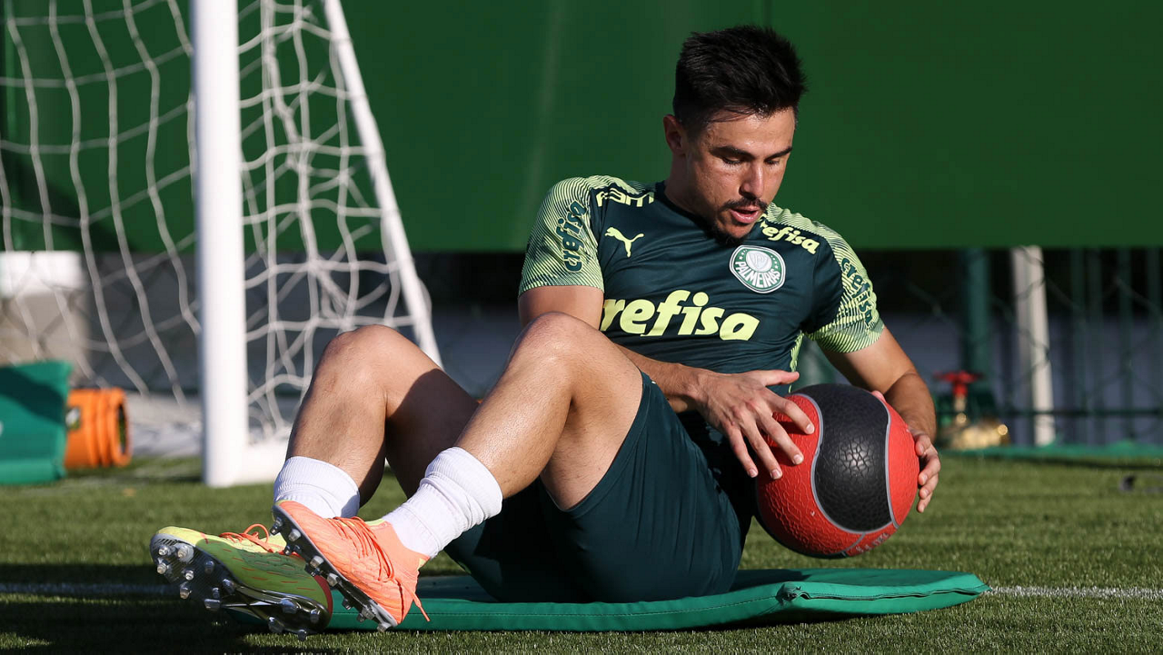 O jogador Gustavo Scarpa, da SE Palmeiras, durante treinamento, na Academia de Futebol. (Foto: Cesar Greco)