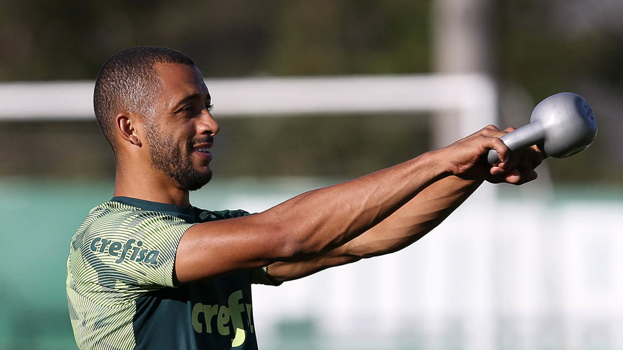O jogador Marcos Rocha, da SE Palmeiras, durante treinamento, na Academia de Futebol. (Foto: Cesar Greco)