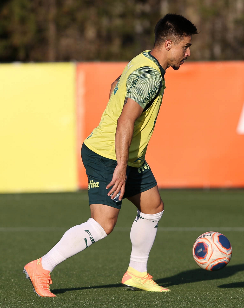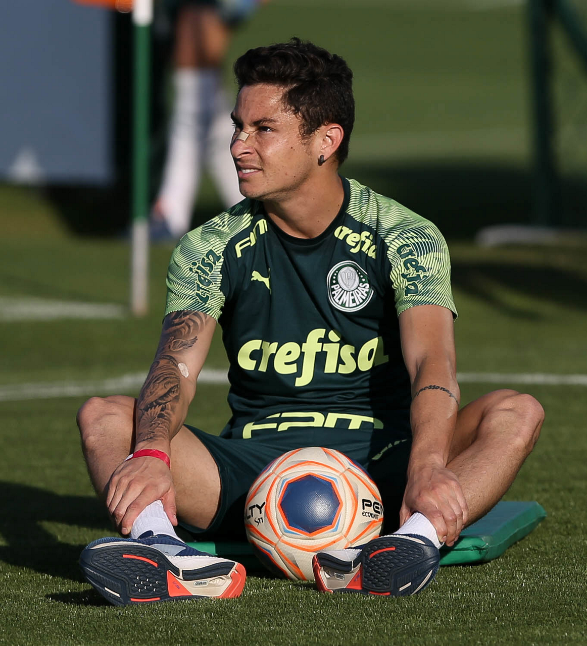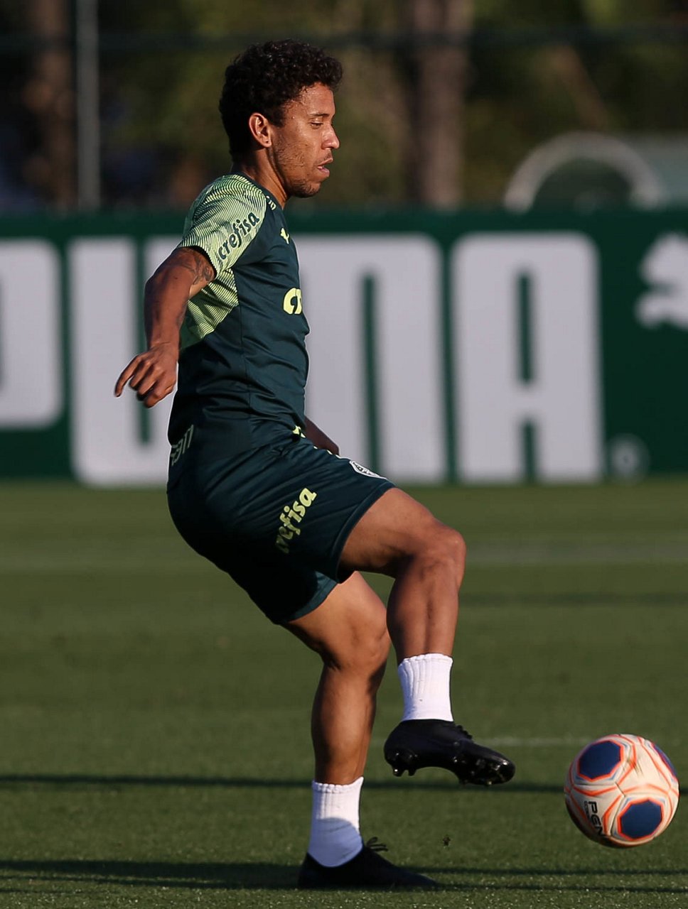 O jogador Raphael Veiga, da SE Palmeiras, durante treinamento, na Academia de Futebol. (Foto: Cesar Greco)