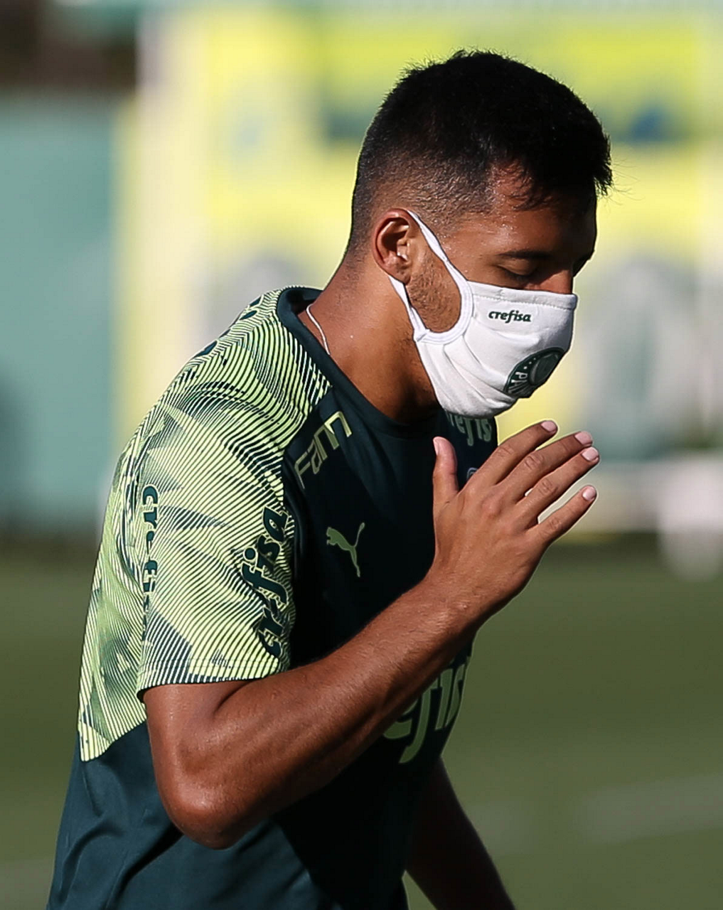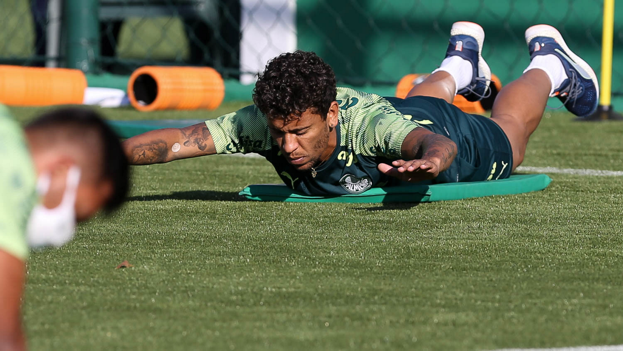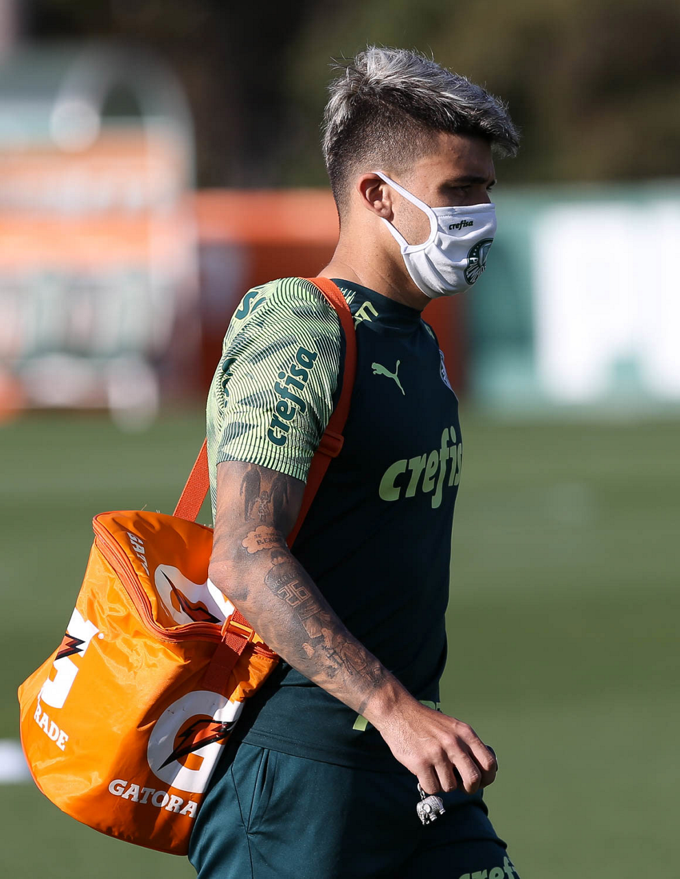 O jogador Raphael Veiga, da SE Palmeiras, durante treinamento, na Academia de Futebol. (Foto: Cesar Greco)