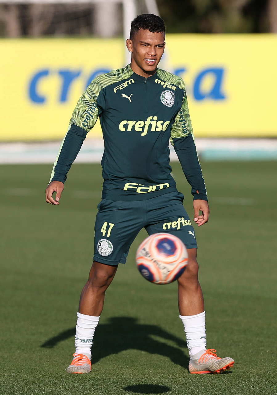 O jogador Gabriel Menino, da SE Palmeiras, durante treinamento, na Academia de Futebol. (Foto: Cesar Greco)