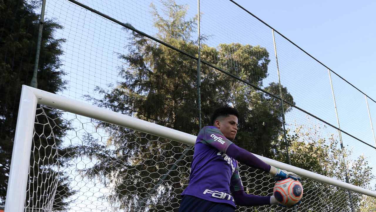 O goleiro Matheus, da SE Palmeiras, durante treinamento, na Academia de Futebol. (Foto: Cesar Greco)