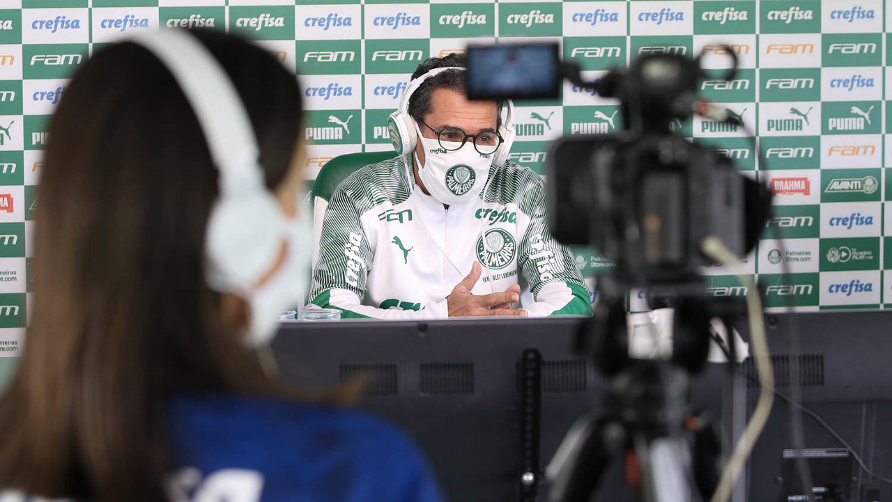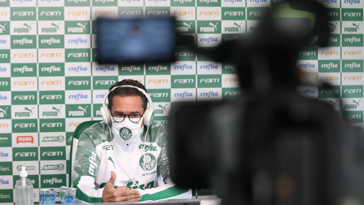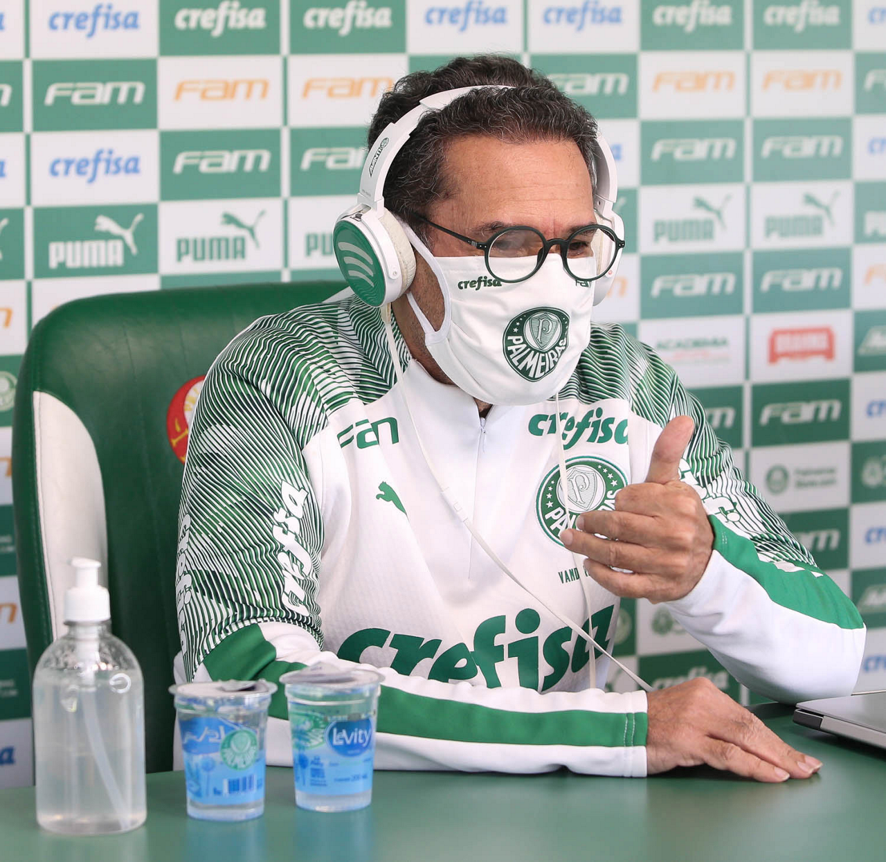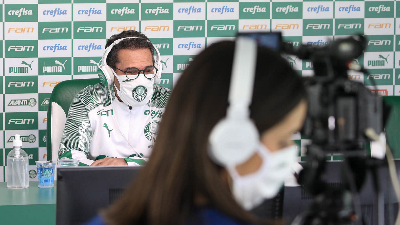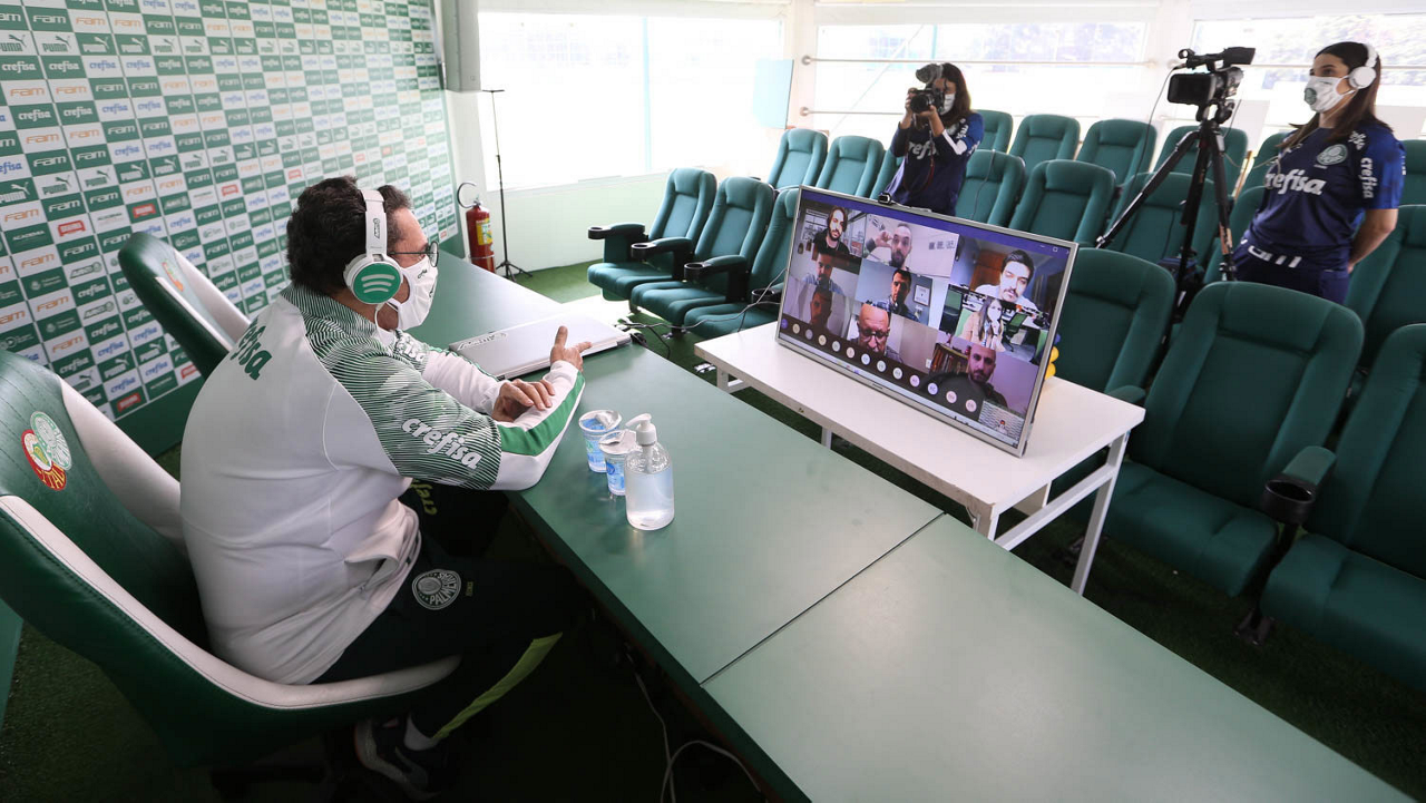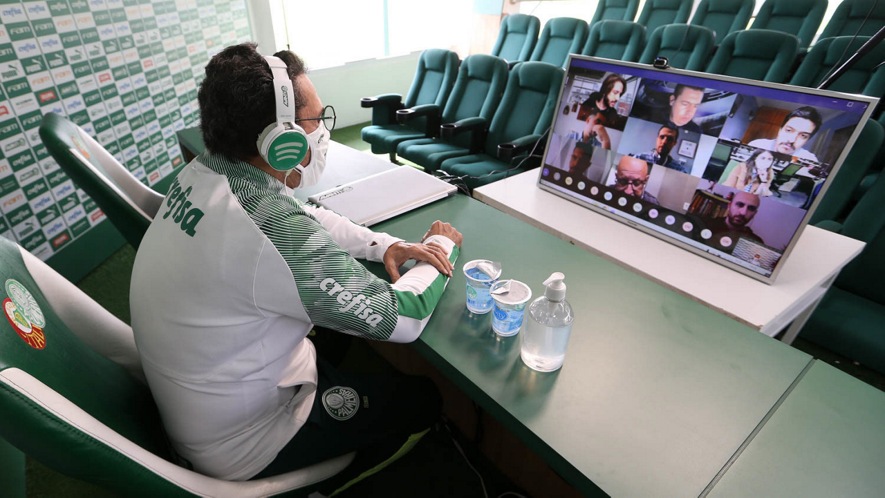 O técnico Vanderlei Luxemburgo, da SE Palmeiras, concede entrevista coletiva virtual, na Academia de Futebol. (Foto: Cesar Greco)