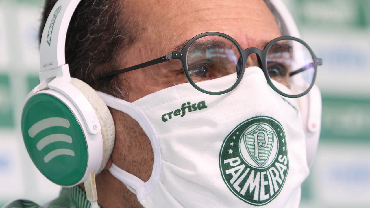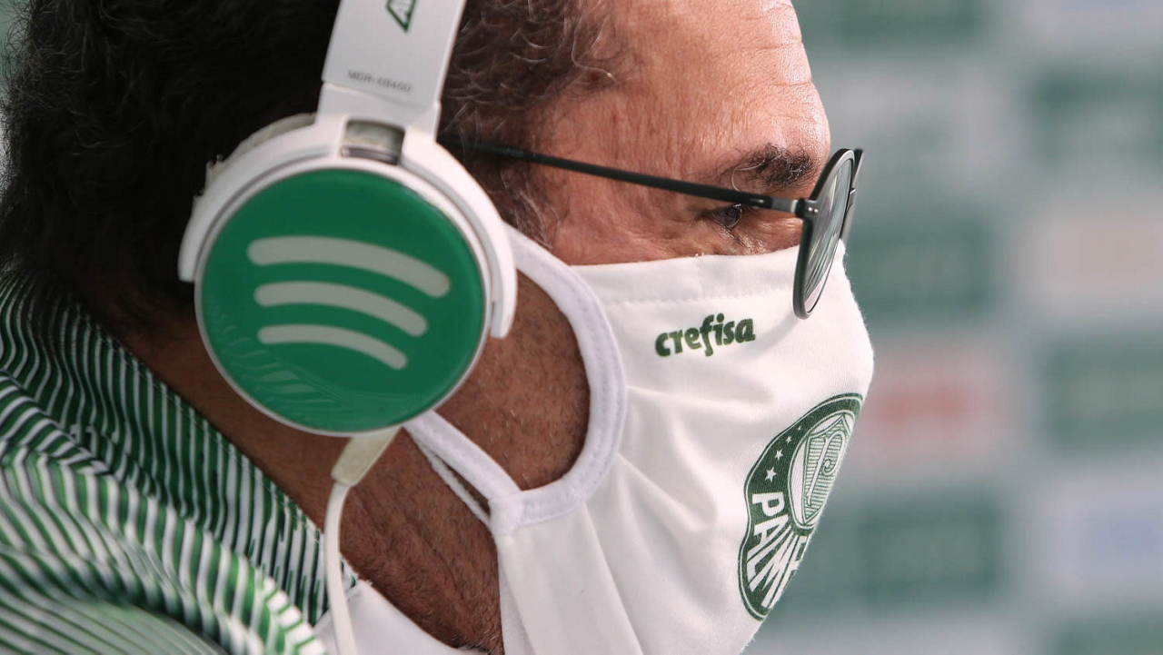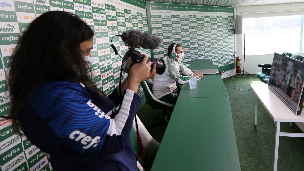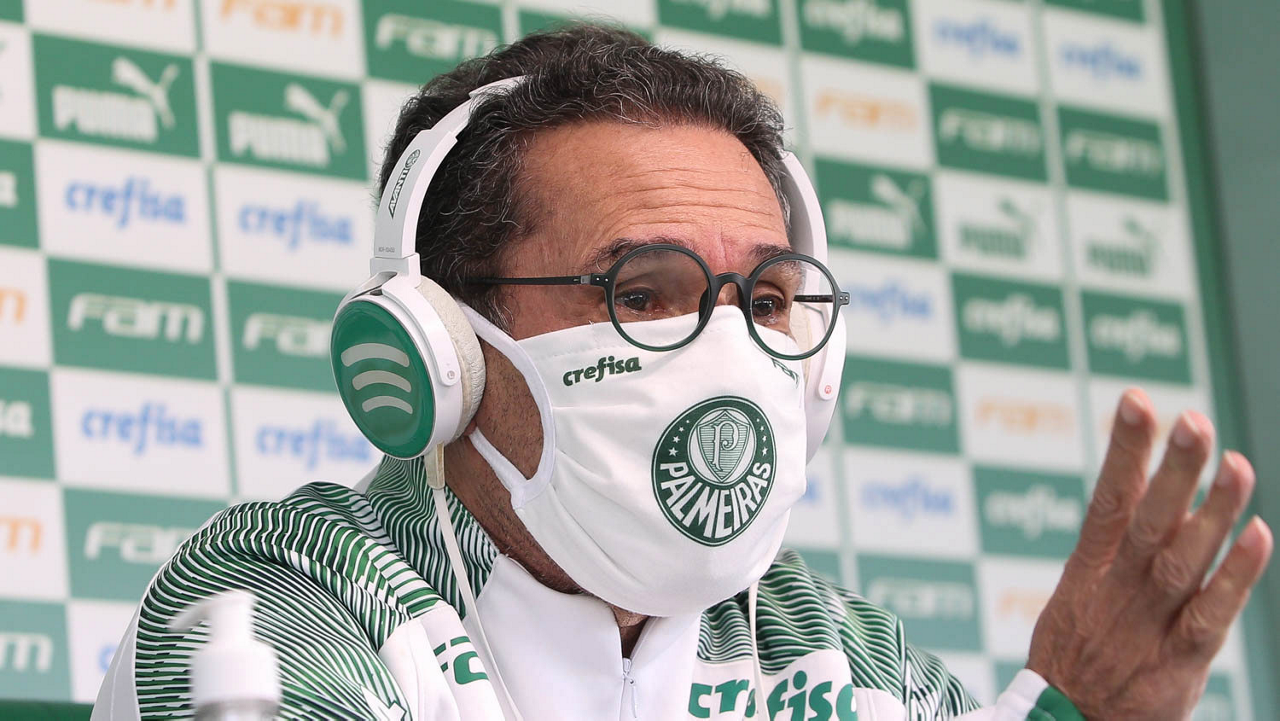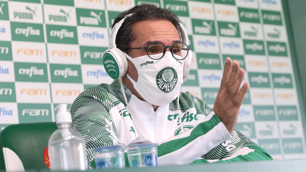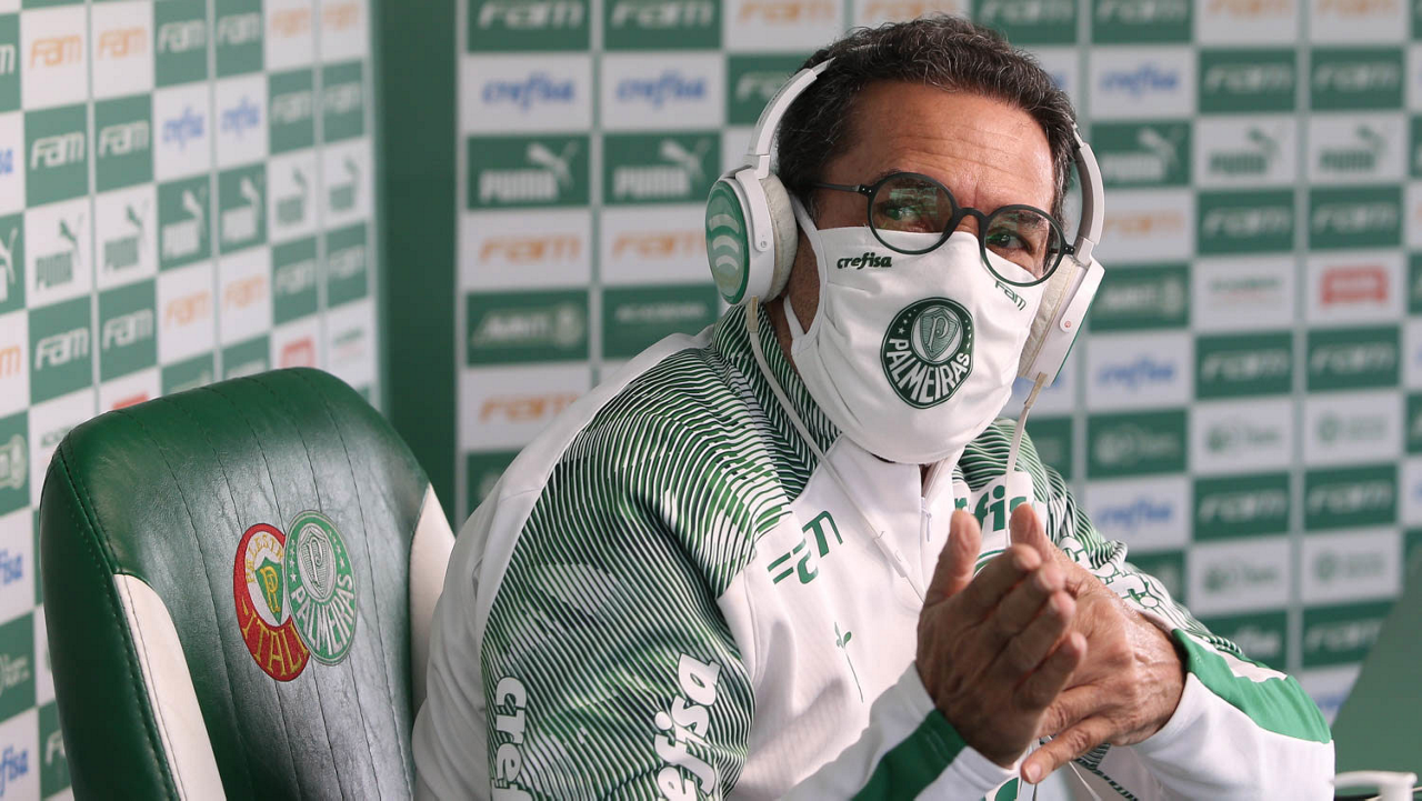 O técnico Vanderlei Luxemburgo, da SE Palmeiras, concede entrevista coletiva virtual, na Academia de Futebol. (Foto: Cesar Greco)