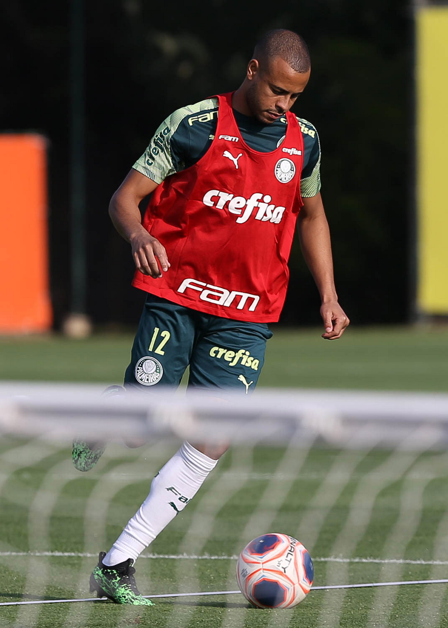 O jogador Mayke, da SE Palmeiras, durante treinamento, na Academia de Futebol. (Foto: Cesar Greco)