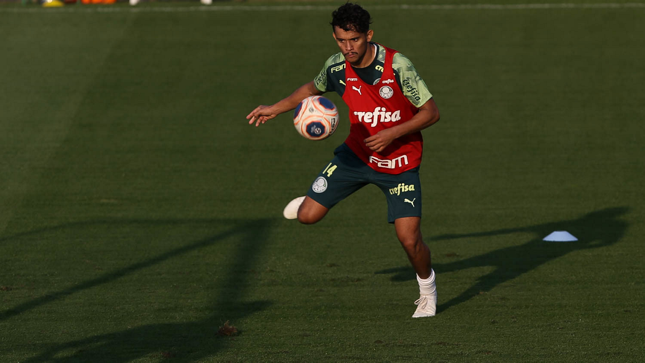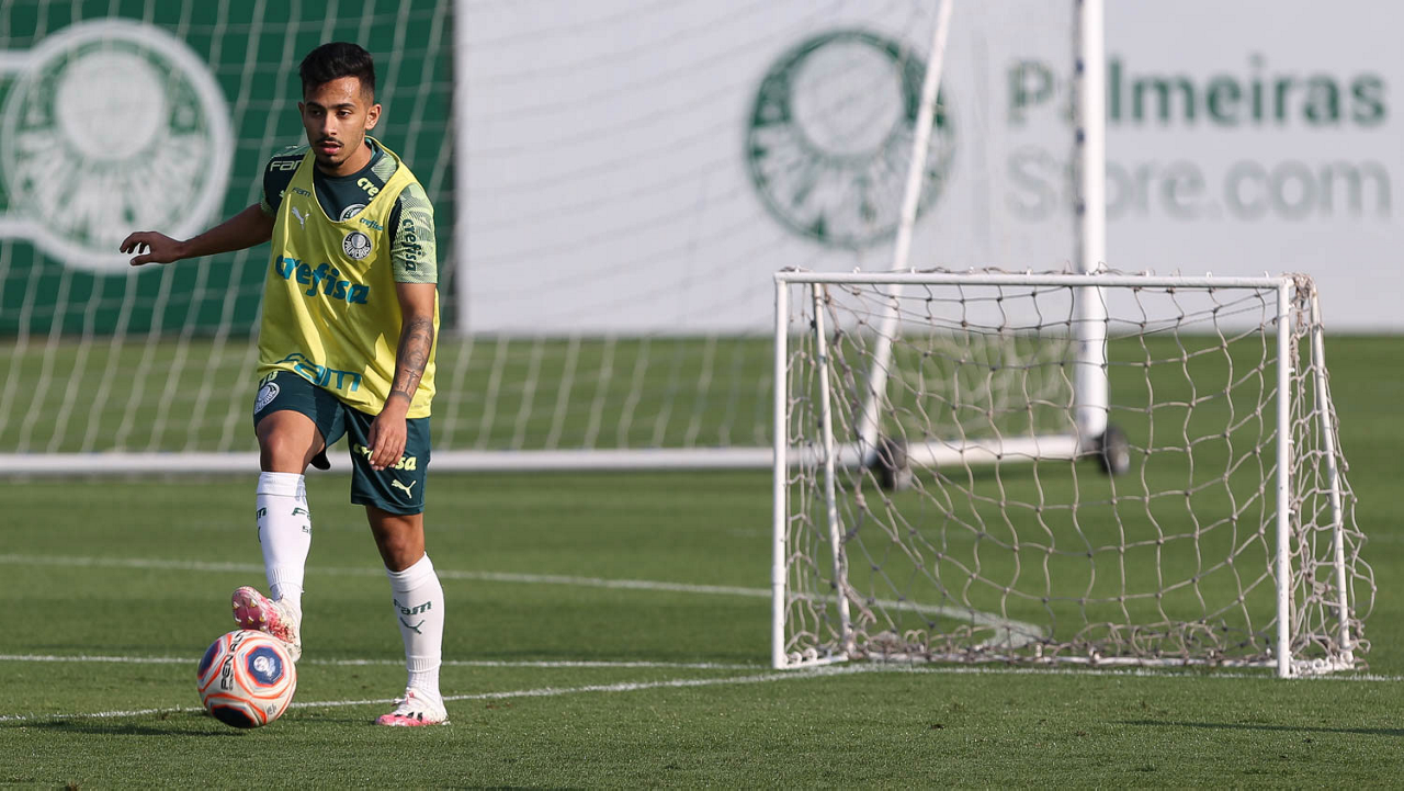O jogador Gabriel Silva, da SE Palmeiras, durante treinamento, na Academia de Futebol. (Foto: Cesar Greco)