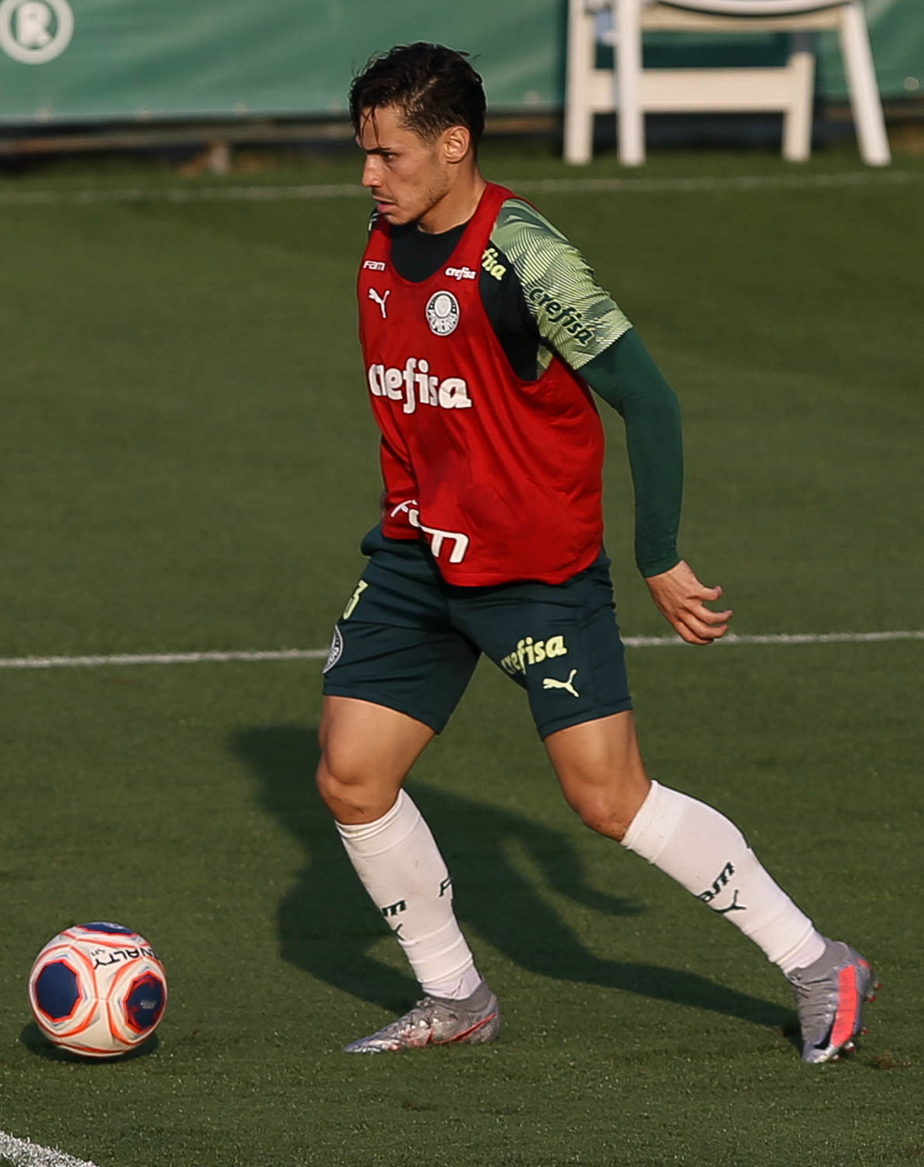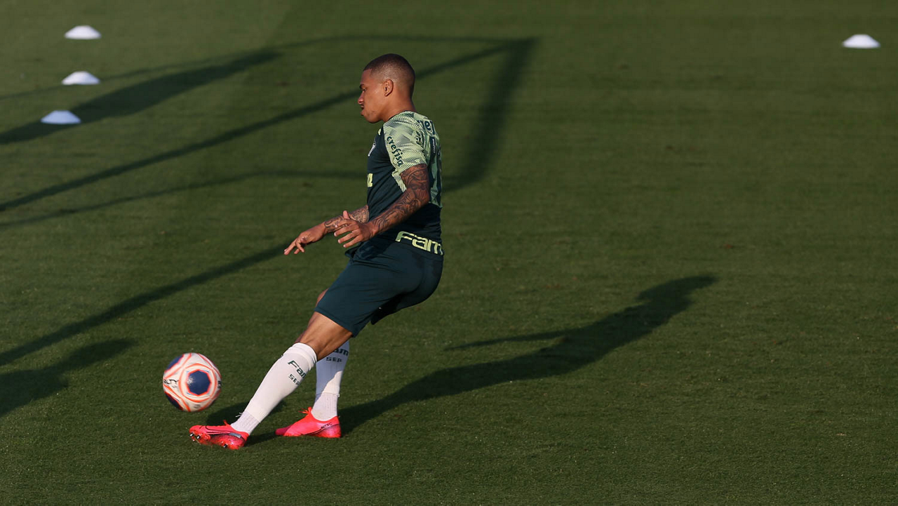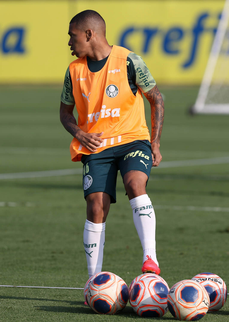 O jogador Raphael Veiga, da SE Palmeiras, durante treinamento, na Academia de Futebol. (Foto: Cesar Greco)