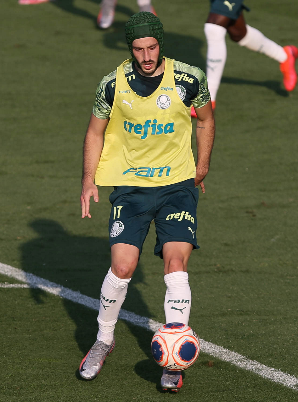 O jogador Gustavo Scarpa, da SE Palmeiras, durante treinamento, na Academia de Futebol. (Foto: Cesar Greco)