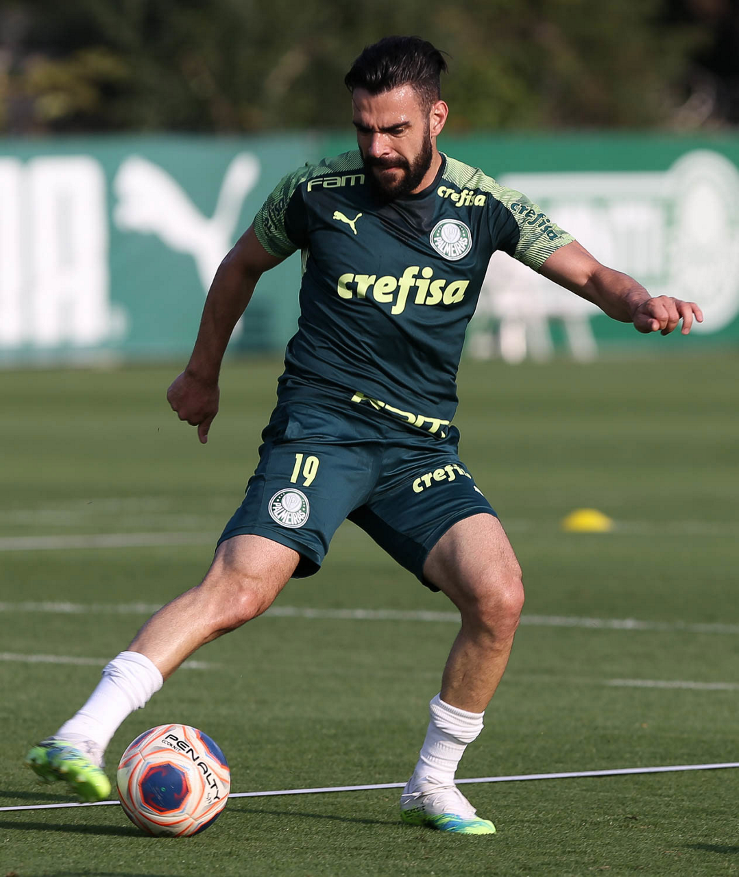 O jogador Vitor Hugo, da SE Palmeiras, durante treinamento, na Academia de Futebol. (Foto: Cesar Greco)