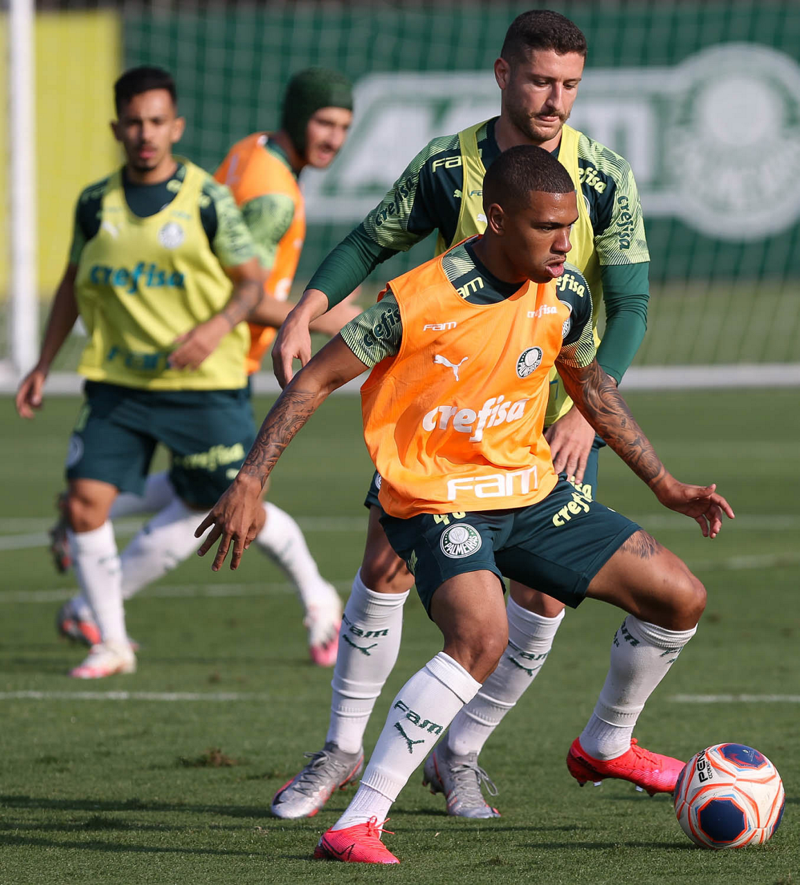 O jogador Bruno Henrique, da SE Palmeiras, durante treinamento, na Academia de Futebol. (Foto: Cesar Greco)