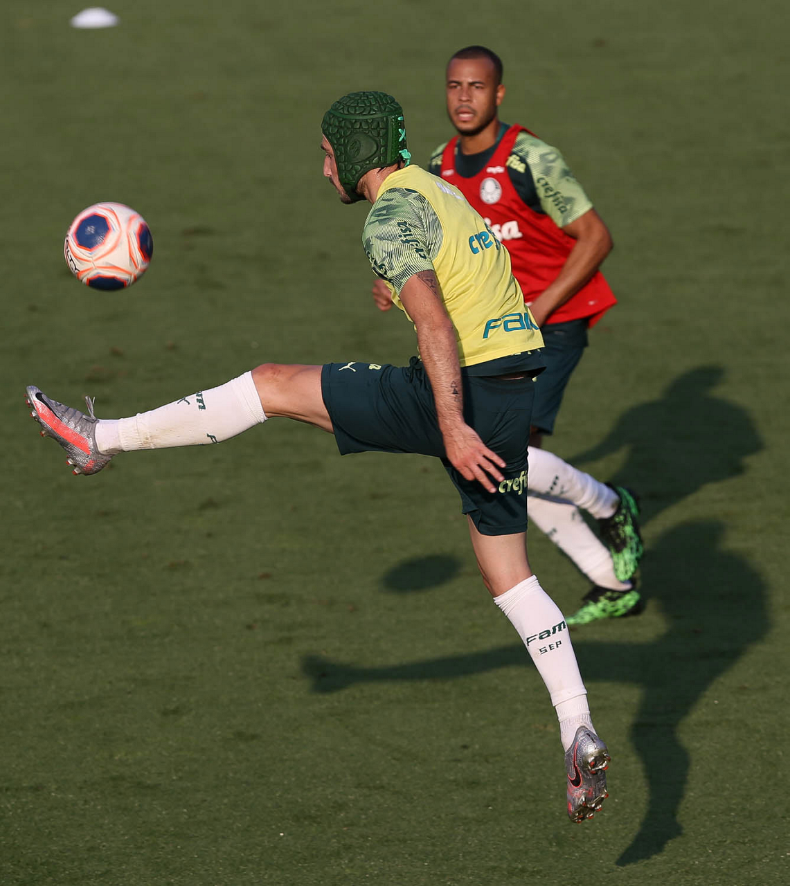 Os jogadores Alan e Wesley (D), da SE Palmeiras, durante treinamento, na Academia de Futebol. (Foto: Cesar Greco)