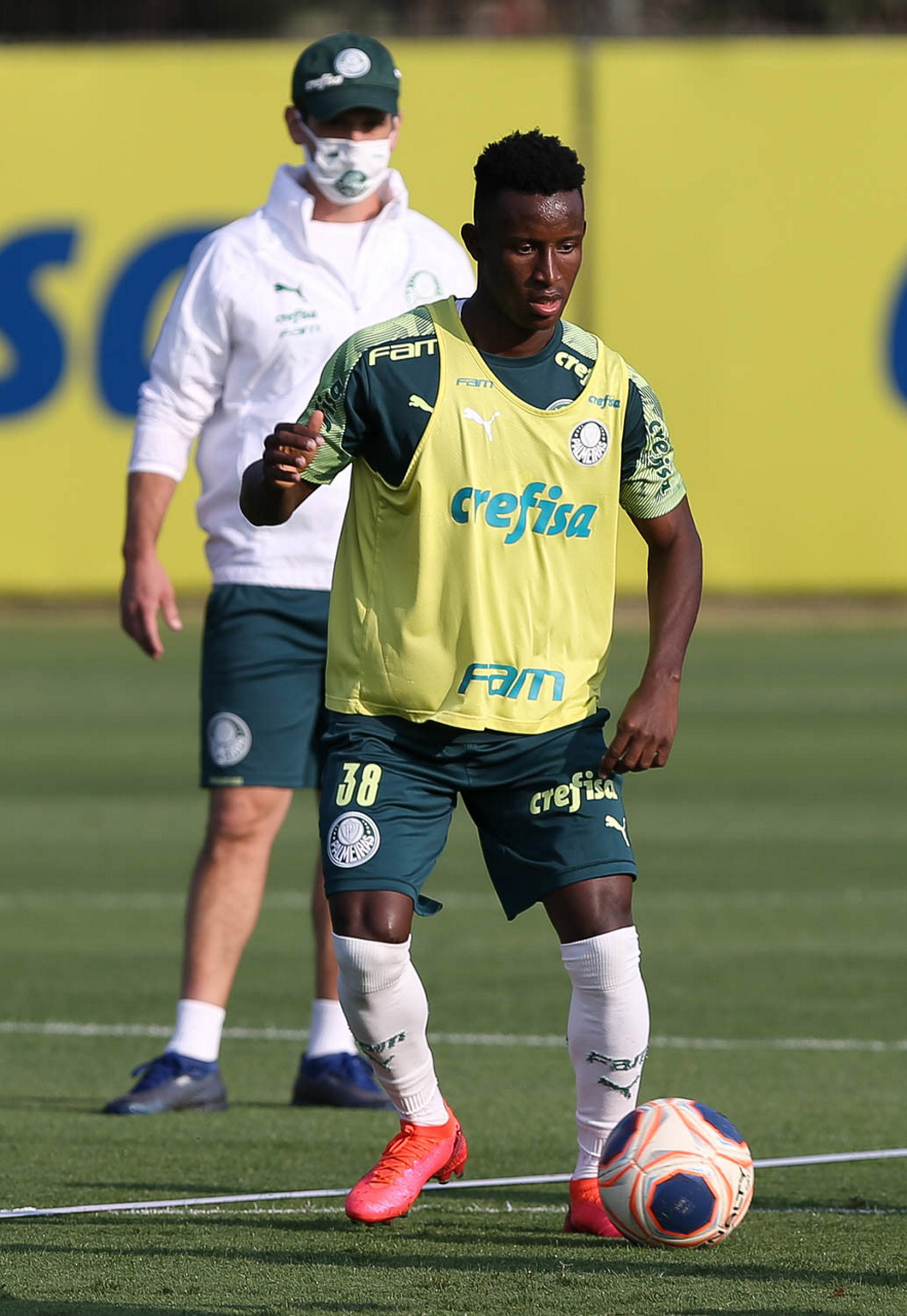 O jogador Iván Angulo, da SE Palmeiras, durante treinamento, na Academia de Futebol. (Foto: Cesar Greco)