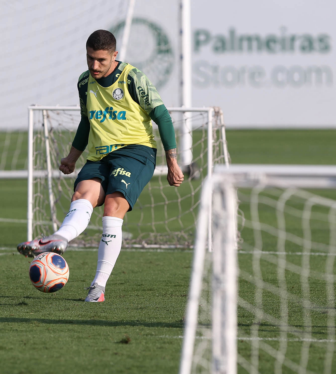 O jogador Matías Viña, da SE Palmeiras, durante treinamento, na Academia de Futebol. (Foto: Cesar Greco)