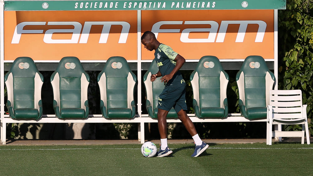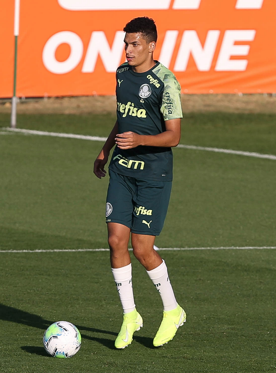 O jogador Raphael Veiga, da SE Palmeiras, durante treinamento, na Academia de Futebol. (Foto: Cesar Greco)