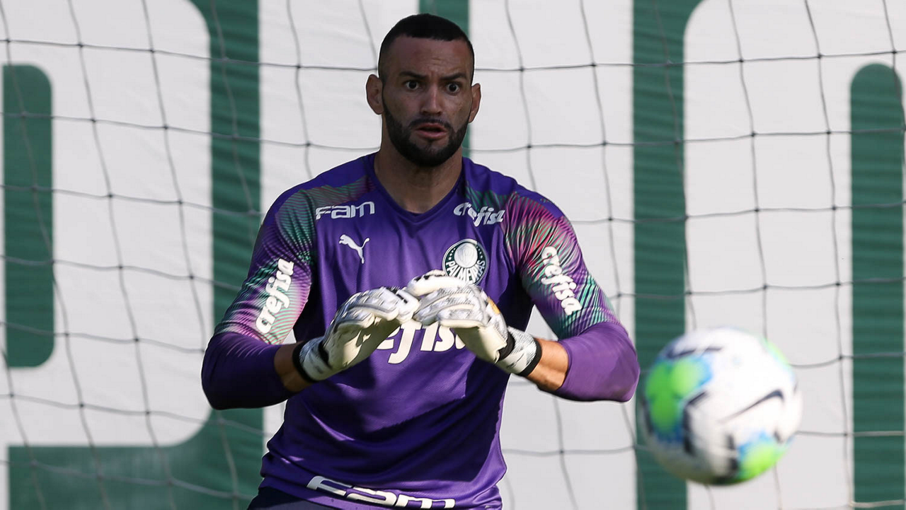 O goleiro Weverton, da SE Palmeiras, durante treinamento, na Academia de Futebol. (Foto: Cesar Greco)