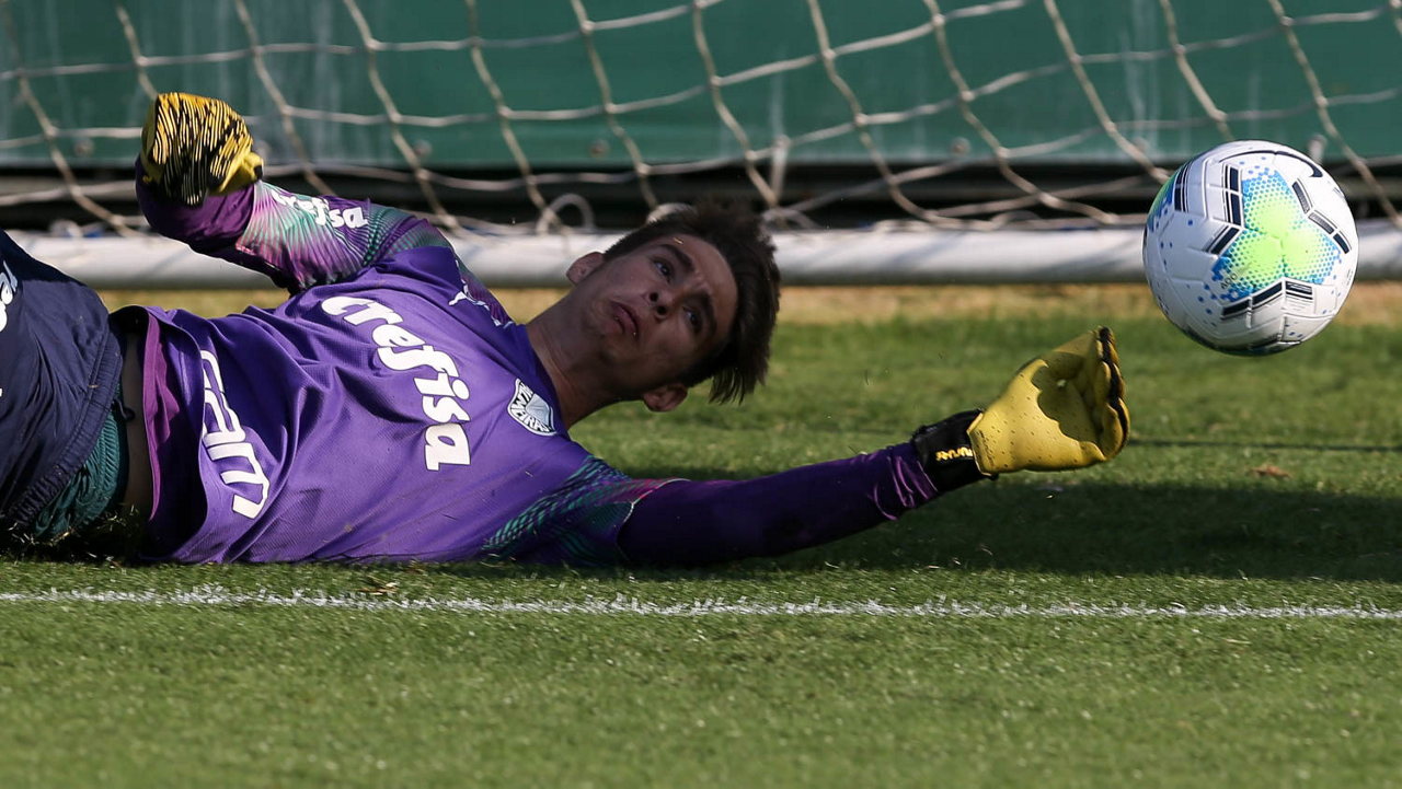O goleiro Vinicius, da SE Palmeiras, durante treinamento, na Academia de Futebol. (Foto: Cesar Greco)