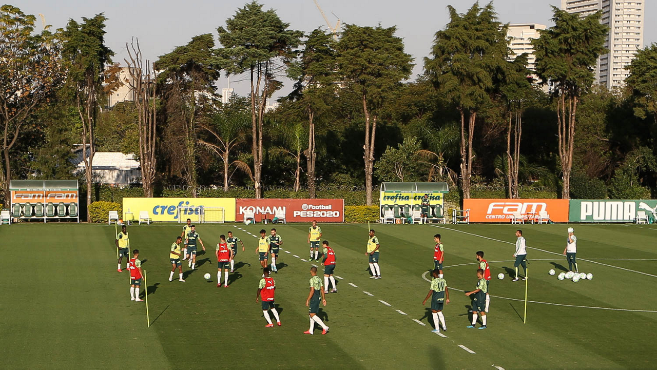 Os jogadores da SE Palmeiras, durante treinamento, na Academia de Futebol. (Foto: Cesar Greco)