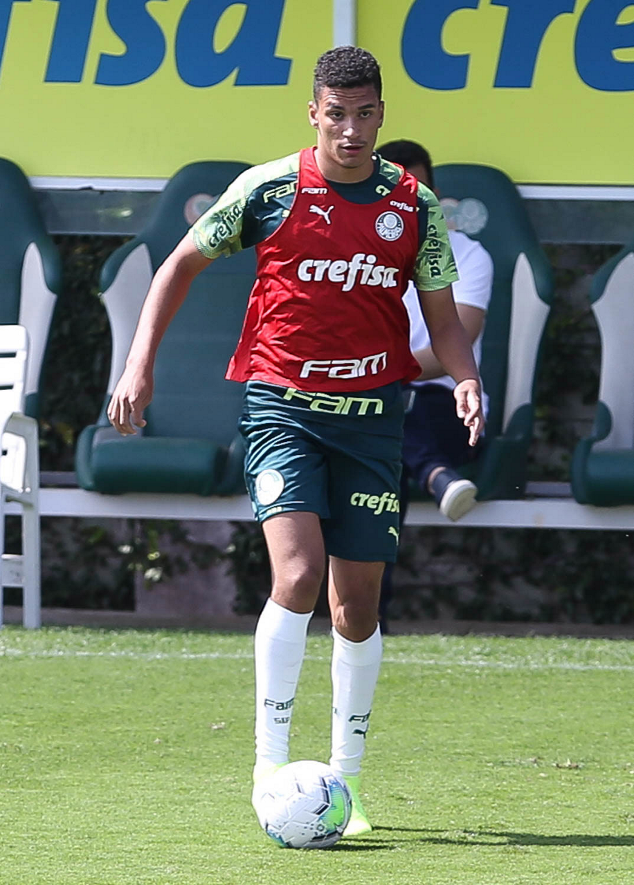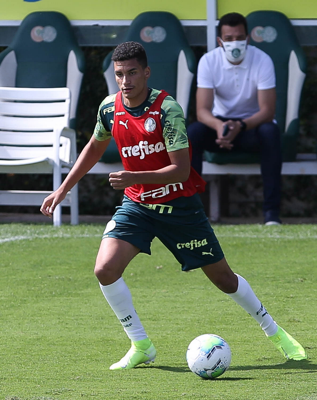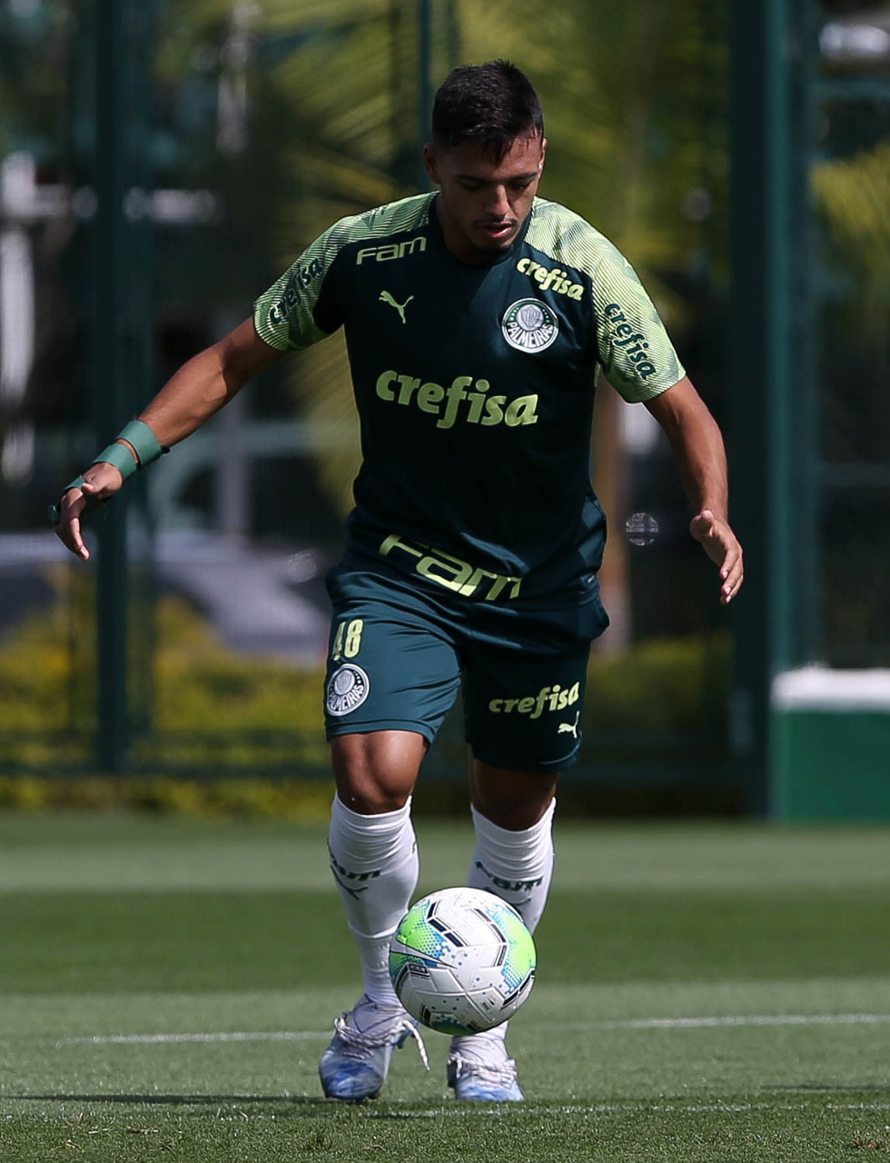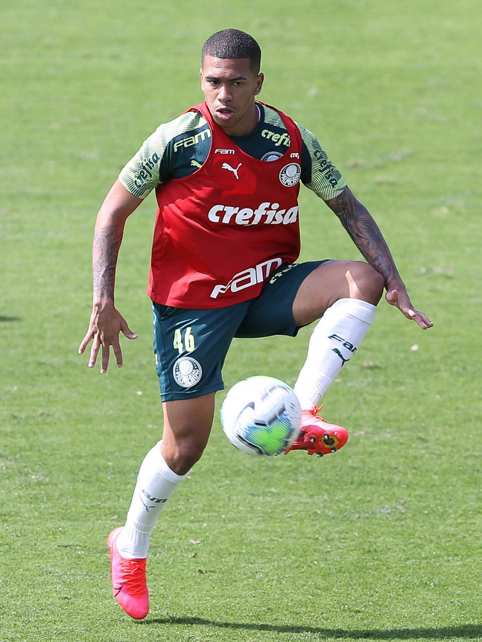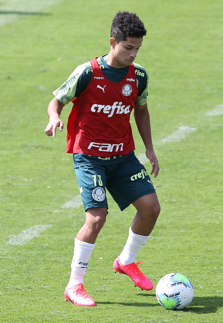 O jogador Gabriel Menino, da SE Palmeiras, durante treinamento, na Academia de Futebol. (Foto: Cesar Greco)