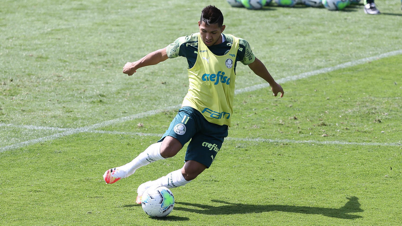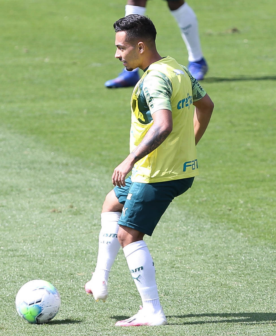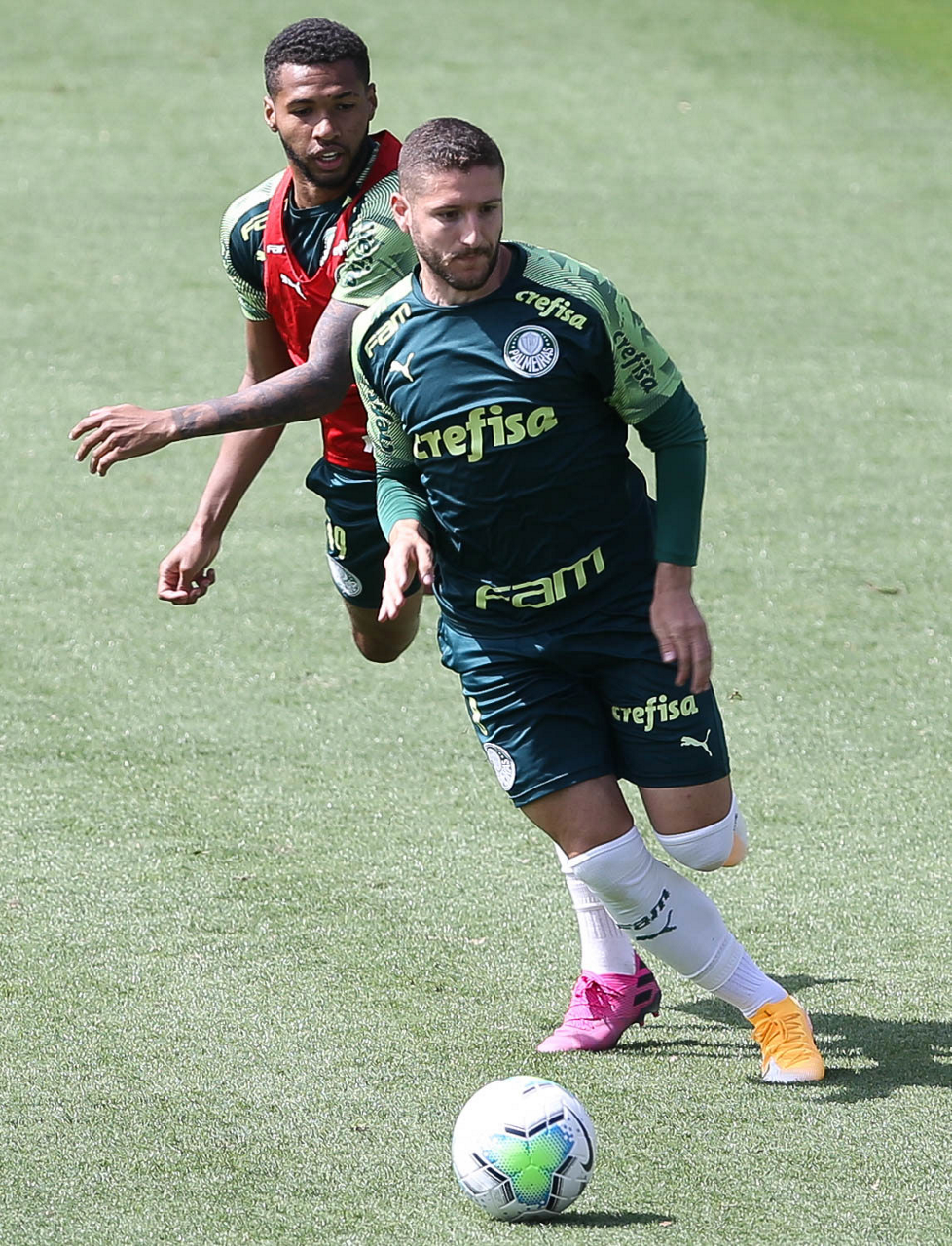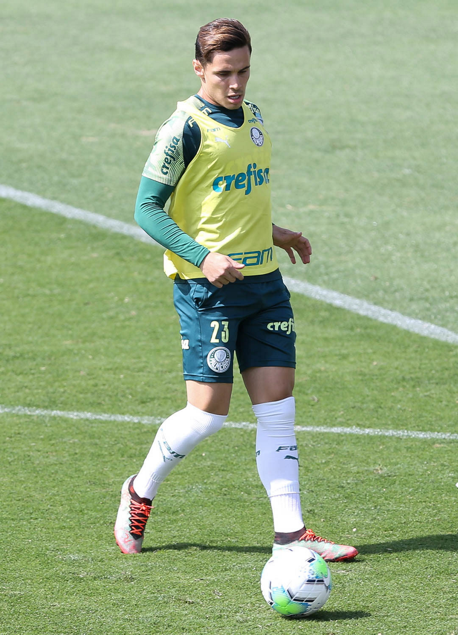 O jogador Raphael Veiga, da SE Palmeiras, durante treinamento, na Academia de Futebol. (Foto: Cesar Greco)
