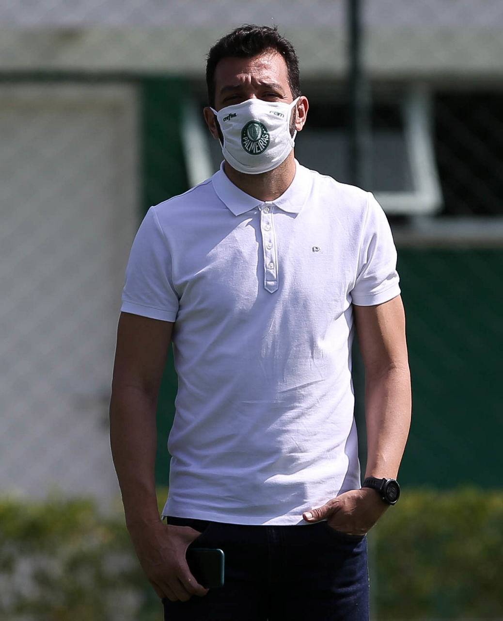 O assessor técnico Edu Dracena, da SE Palmeiras, durante treinamento, na Academia de Futebol. (Foto: Cesar Greco)