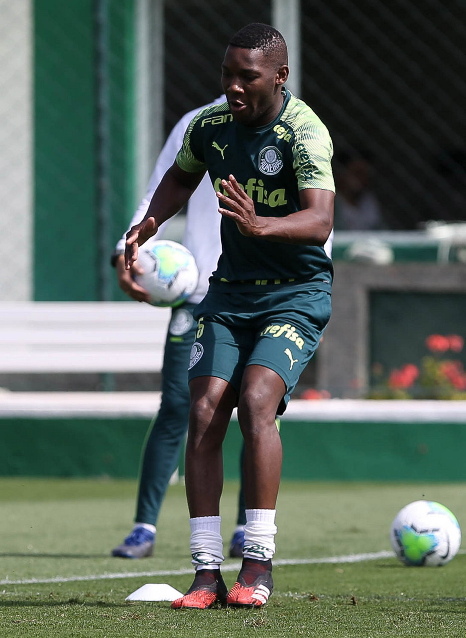 O jogador Iván Angulo, da SE Palmeiras, durante treinamento, na Academia de Futebol. (Foto: Cesar Greco)