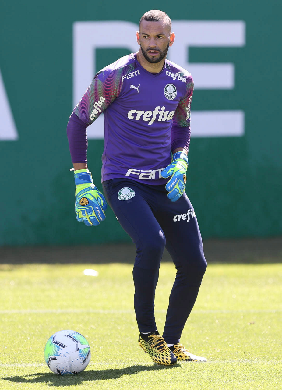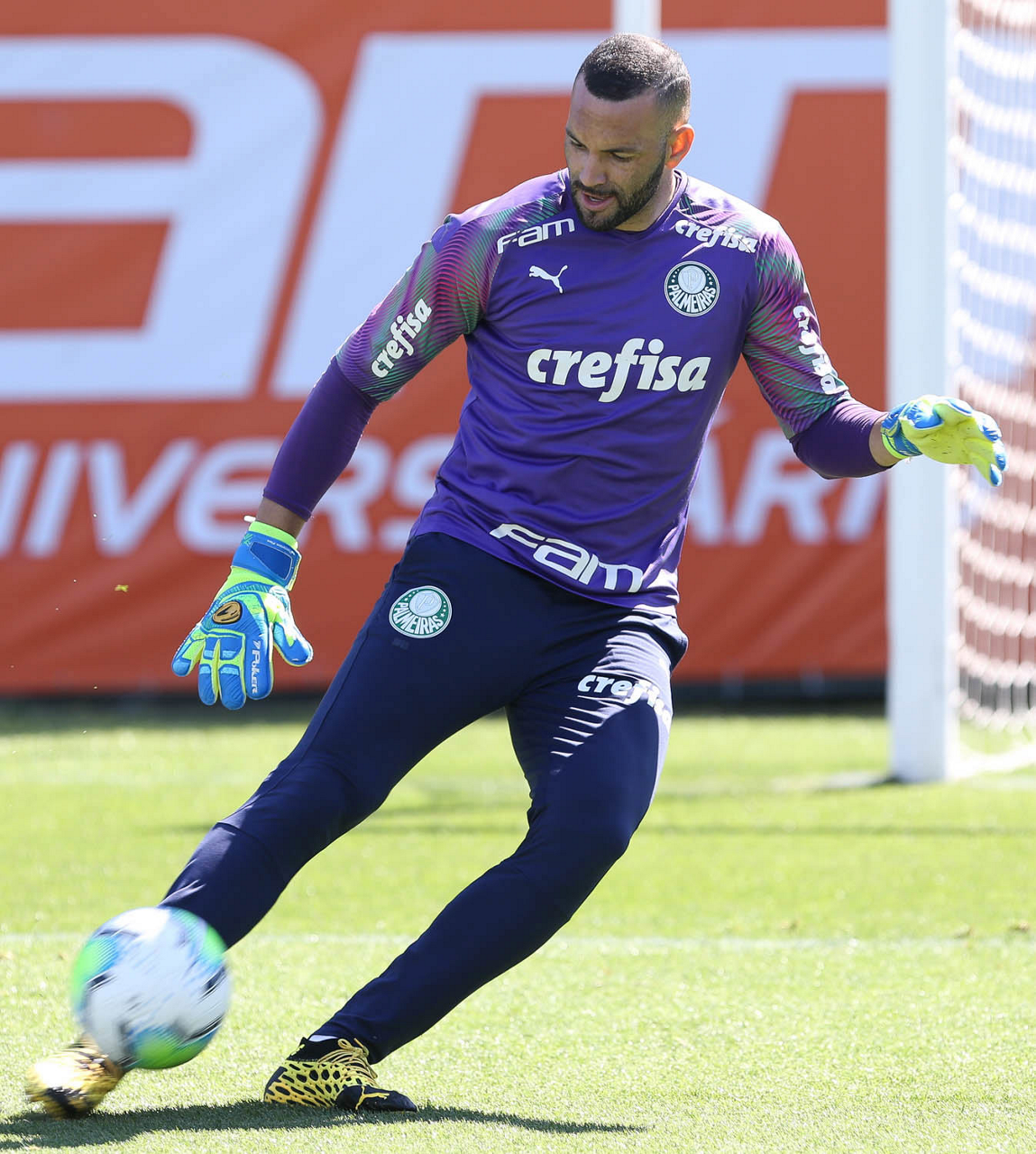 O goleiro Weverton, da SE Palmeiras, durante treinamento, na Academia de Futebol. (Foto: Cesar Greco)