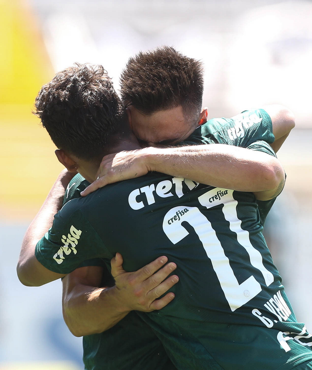 O jogador Gabriel Veron, da SE Palmeiras, comemora seu gol contra a equipe do Red Bull Bragantino, durante partida válida pela oitava rodada, do Campeonato Brasileiro, Série A, no Estádio Nabi Abi Chedid. (Foto: Cesar Greco)